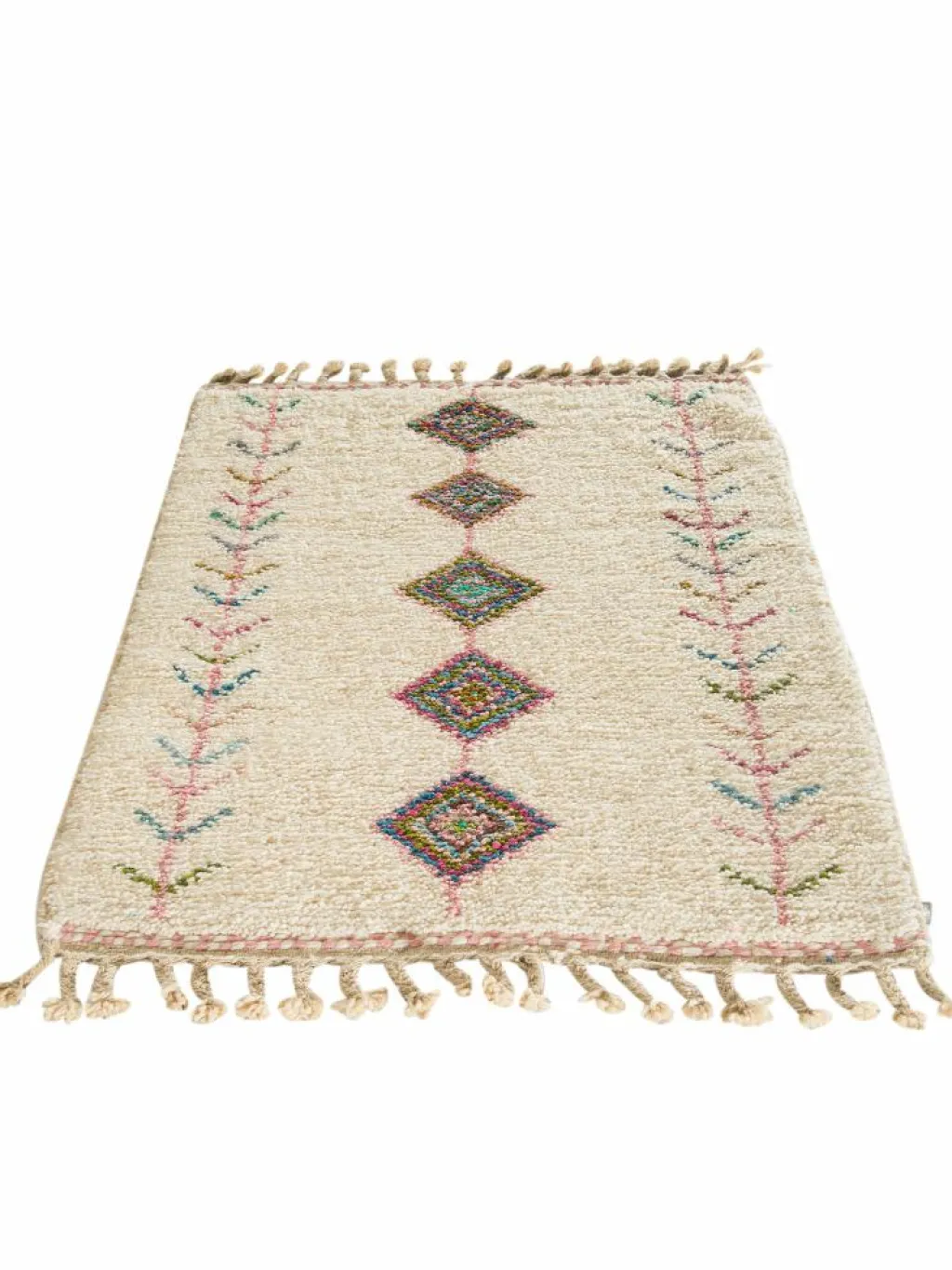 . Hier werden eher niedrigflorige weißgrundige Teppiche mit Designs aus oft bunterWolle