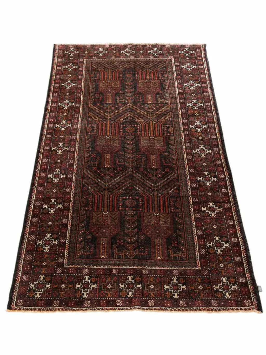 -Teppich hat seinen Namen vom Stamme der Baluchen, wird aber auch von anderen Stämmen geknüpft. Die einzelnen Stämme bleiben dabei ihren traditionellen Mustern und ihrer individuellen Farbgebung treu. Daher ist einBelutsch