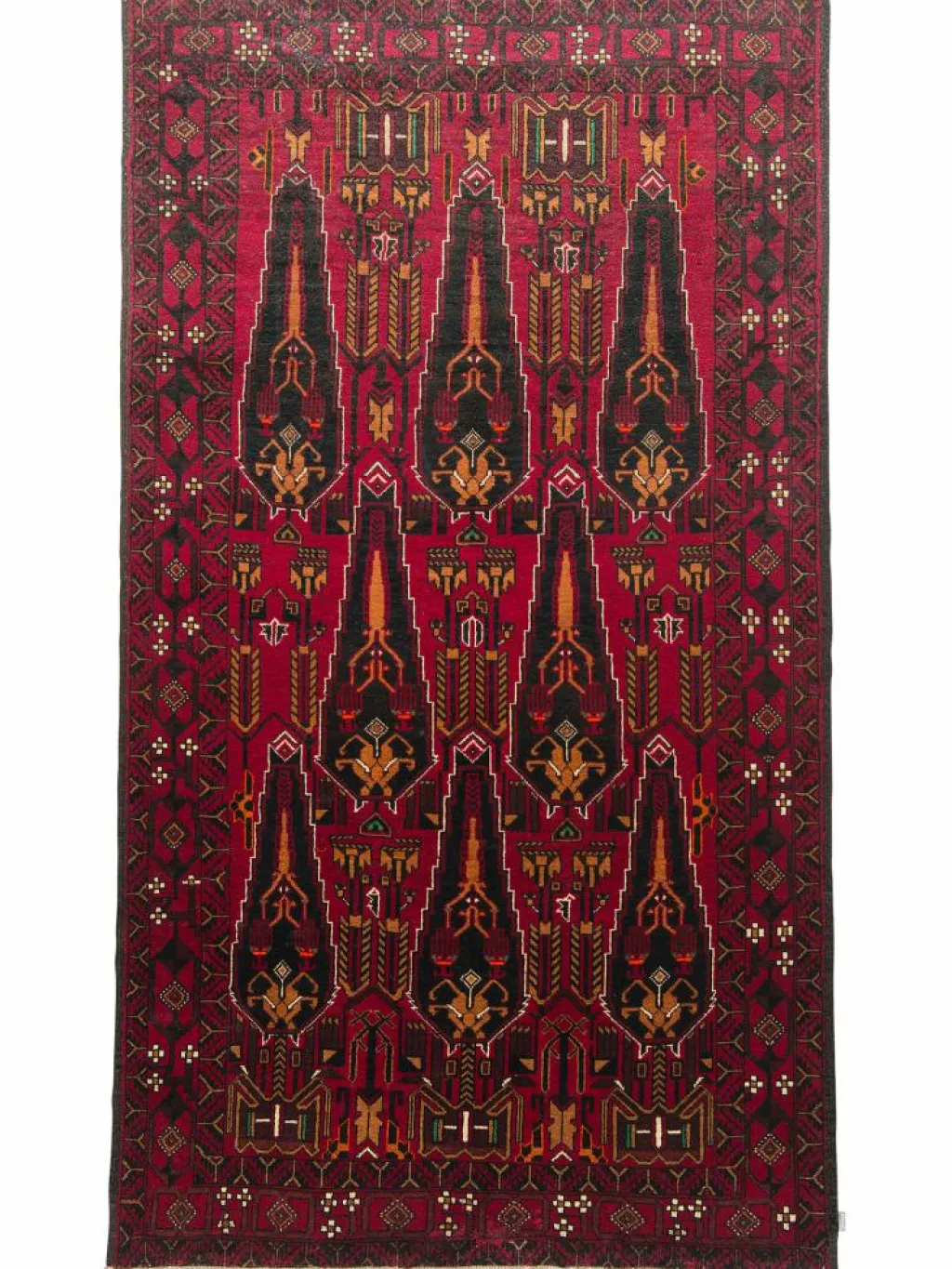 -Teppich hat seinen Namen vom Stamme der Baluchen, wird aber auch von anderen Stämmen geknüpft. Die einzelnen Stämme bleiben dabei ihren traditionellen Mustern und ihrer individuellen Farbgebung treu. Daher ist einBelutsch