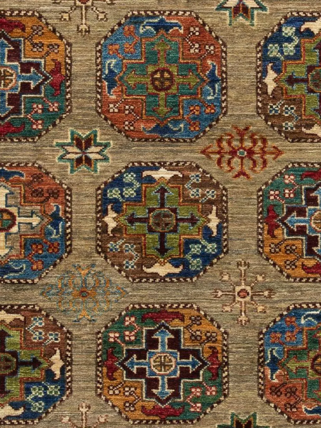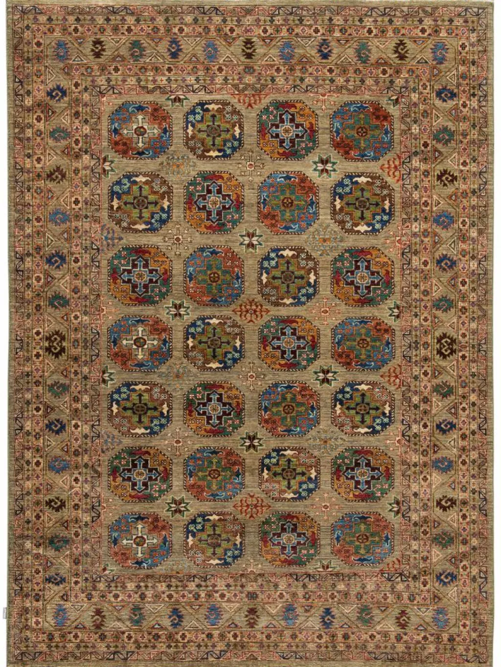 zeigt im Muster das klassische turkmenische Bucharadesign. Als Vorbild dienen dabei die jeweilige Stammeszeichen (Gül
