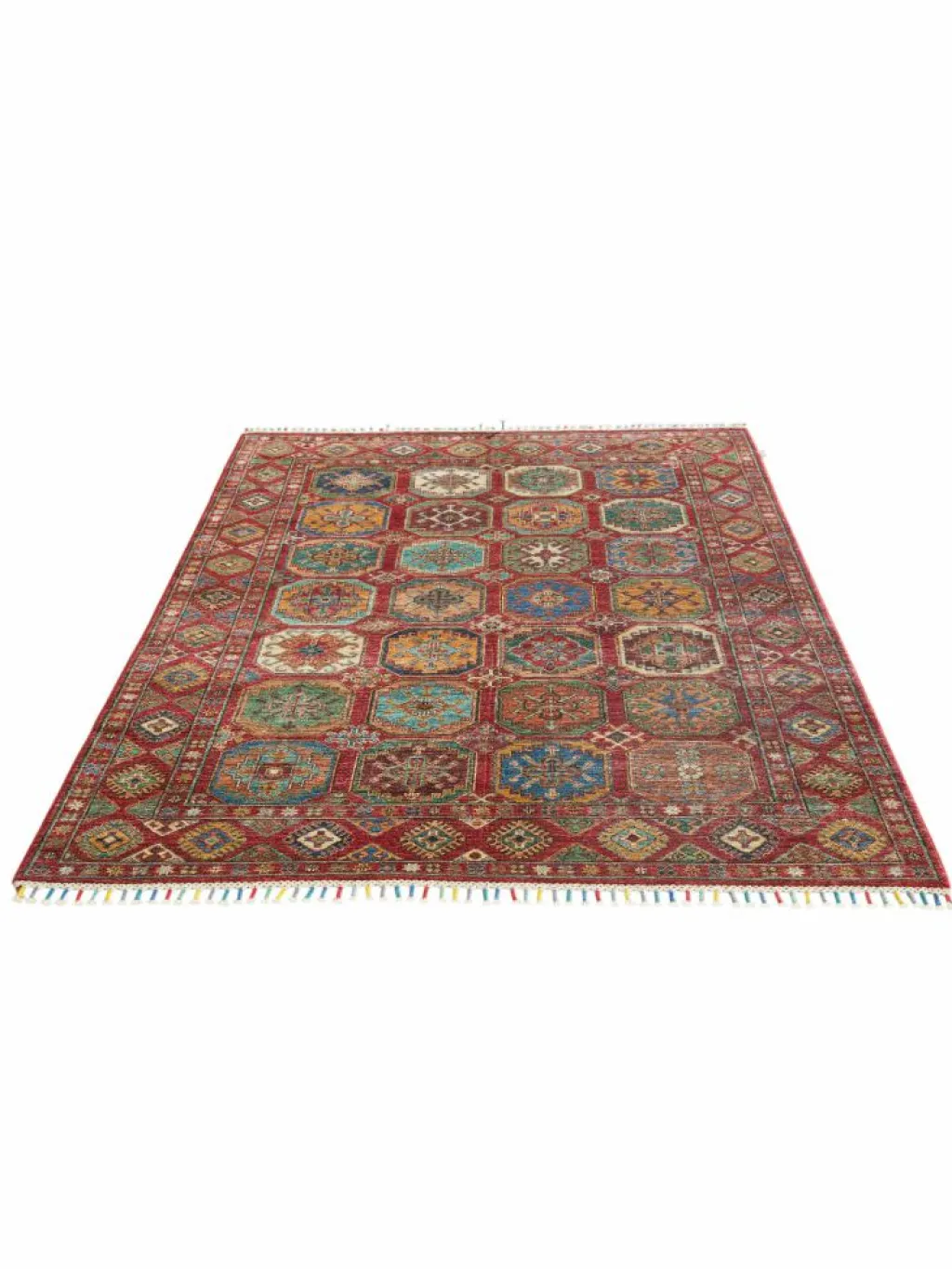 zeigt im Muster das klassische turkmenische Bucharadesign. Als Vorbild dienen dabei die jeweilige Stammeszeichen (Gül