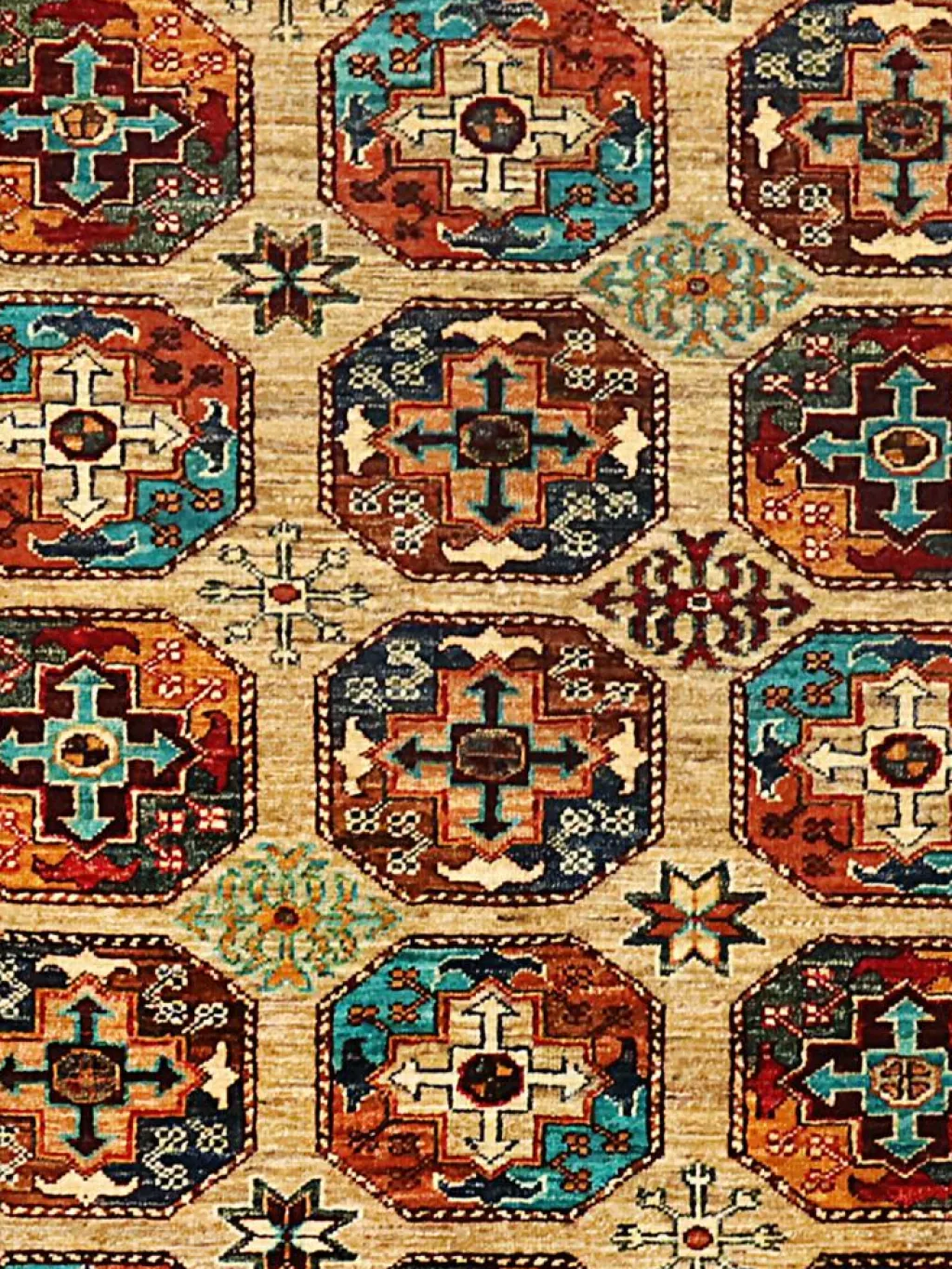 zeigt im Muster das klassische turkmenische Bucharadesign. Als Vorbild dienen dabei die jeweilige Stammeszeichen (Gül