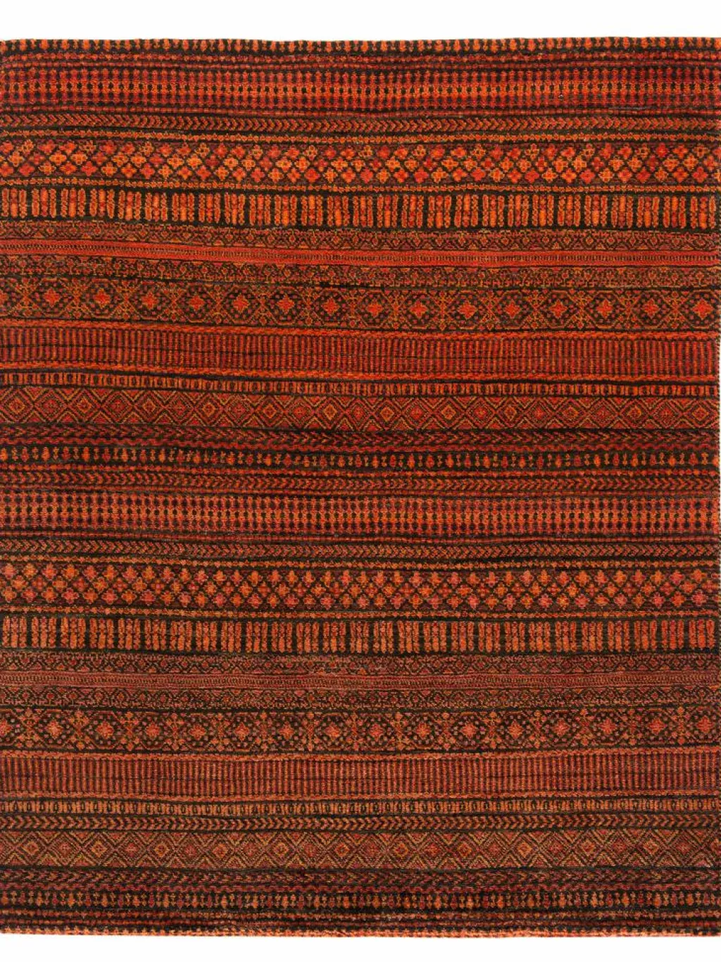 ist eine ungewöhnliche moderne Variation des traditionellen persichen Gabbehs. Er ist kürzer im Flor und feiner geknüpft. Es gibt zahllose Neukreationen in individuellen und einzigartigen Farben und Mustern.| Gesamthöhe: | ca. 10 mm |