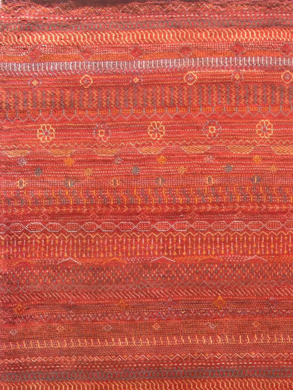 ist eine ungewöhnliche moderne Variation des traditionellen persichen Gabbehs. Er ist kürzer im Flor und feiner geknüpft. Es gibt zahllose Neukreationen in individuellen und einzigartigen Farben und Mustern.| Gesamthöhe: | ca. 10 mm |