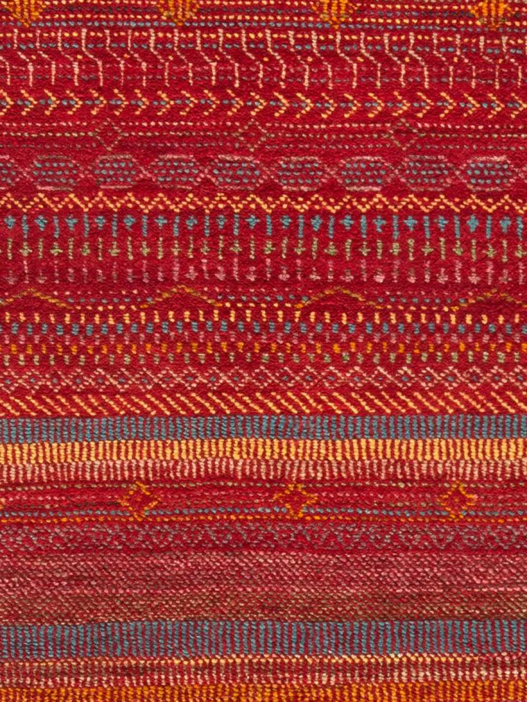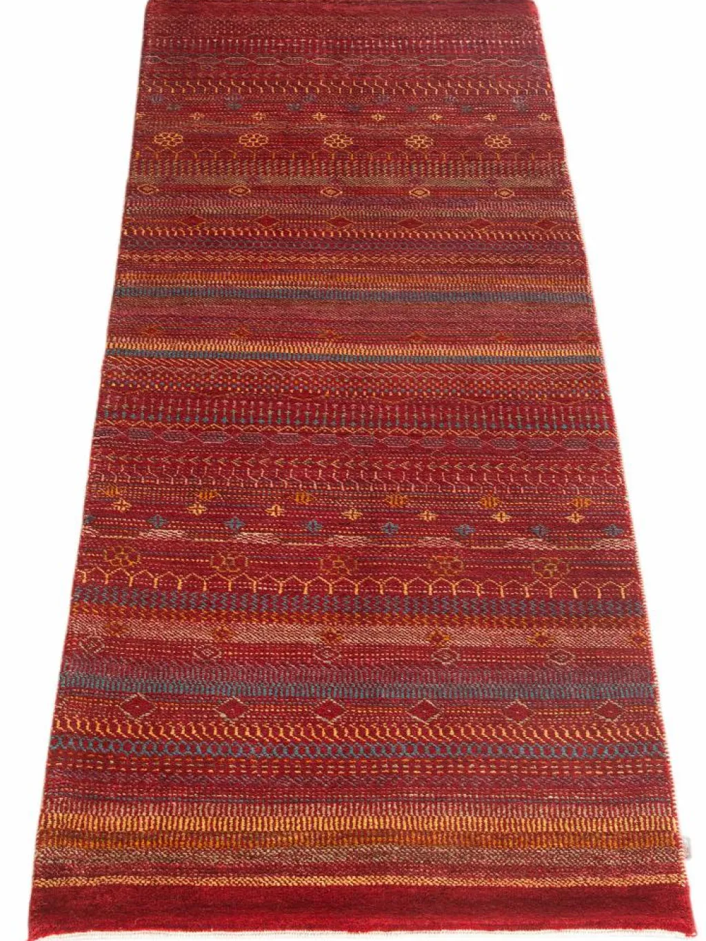 ist eine ungewöhnliche moderne Variation des traditionellen persichen Gabbehs. Er ist kürzer im Flor und feiner geknüpft. Es gibt zahllose Neukreationen in individuellen und einzigartigen Farben und Mustern.| Gesamthöhe: | ca. 10 mm |