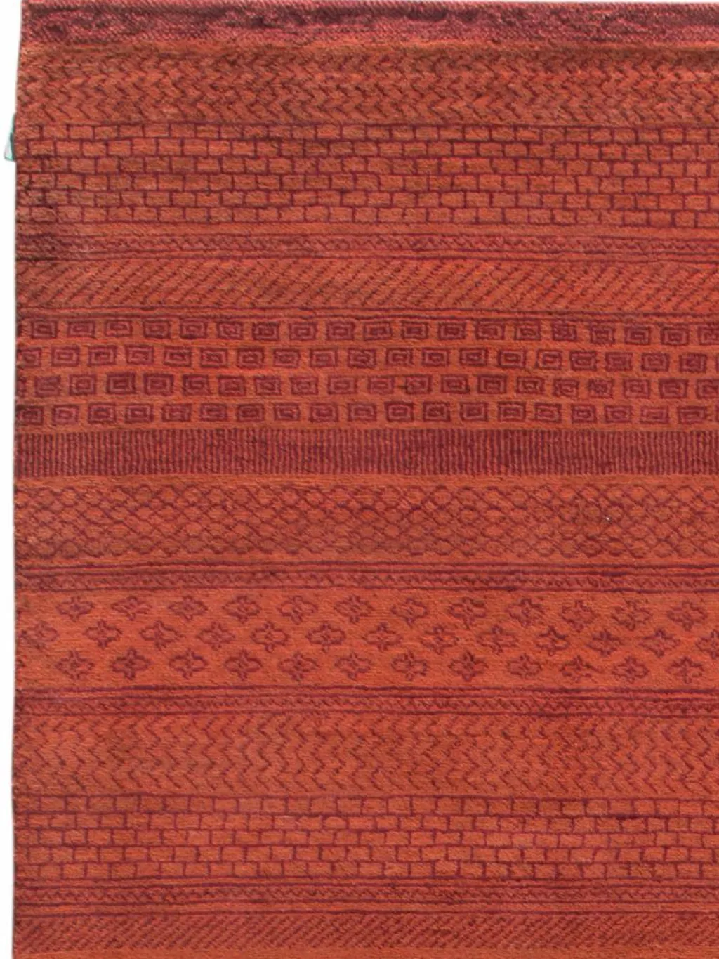 ist eine ungewöhnliche moderne Variation des traditionellen persichen Gabbehs. Er ist kürzer im Flor und feiner geknüpft. Es gibt zahllose Neukreationen in individuellen und einzigartigen Farben und Mustern.| Gesamthöhe: | ca. 10 mm |