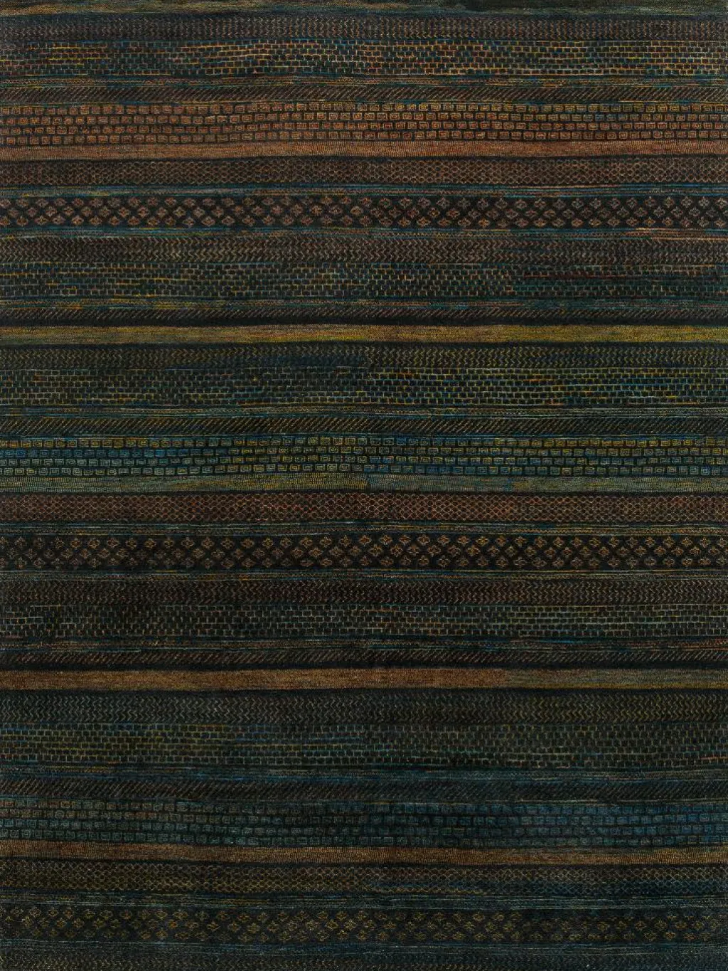 ist eine ungewöhnliche moderne Variation des traditionellen persichen Gabbehs. Er ist kürzer im Flor und feiner geknüpft. Es gibt zahllose Neukreationen in individuellen und einzigartigen Farben und Mustern.| Gesamthöhe: | ca. 10 mm |