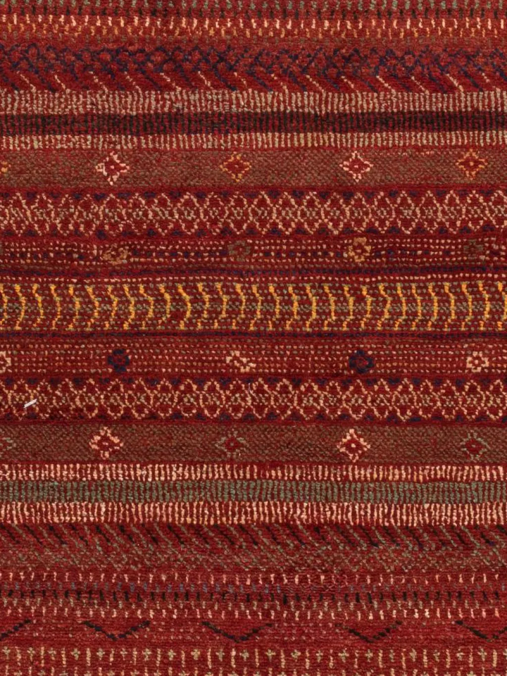 ist eine ungewöhnliche moderne Variation des traditionellen persichen Gabbehs. Er ist kürzer im Flor und feiner geknüpft. Es gibt zahllose Neukreationen in individuellen und einzigartigen Farben und Mustern.| Gesamthöhe: | ca. 8 mm |
