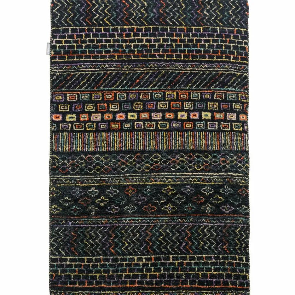 ist eine ungewöhnliche moderne Variation des traditionellen persichen Gabbehs. Er ist kürzer im Flor und feiner geknüpft. Es gibt zahllose Neukreationen in individuellen und einzigartigen Farben und Mustern.| Gesamthöhe: | ca. 10 mm |