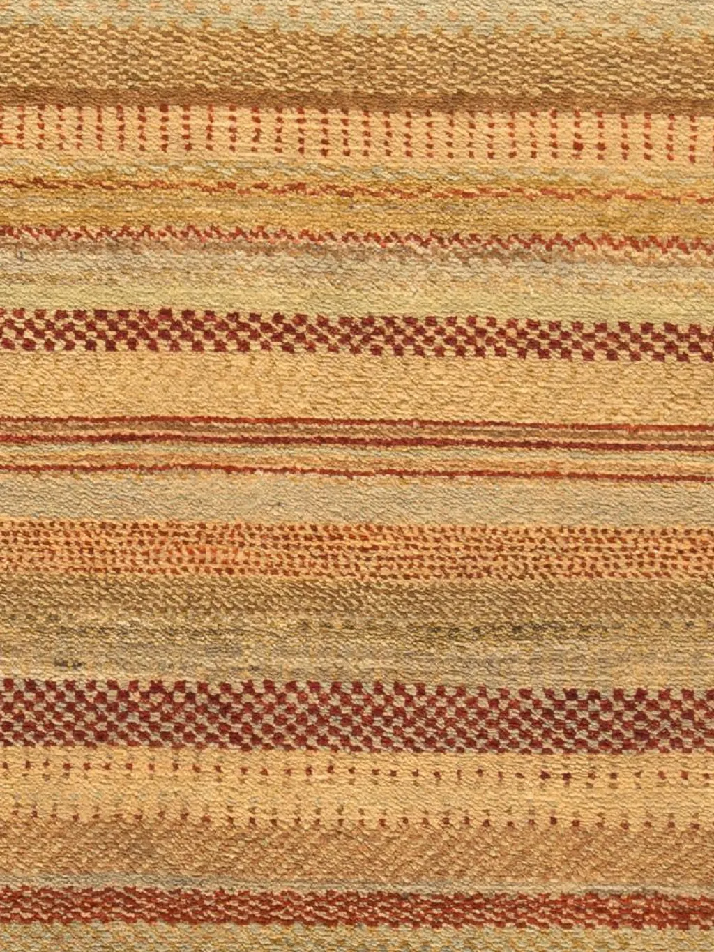 ist eine ungewöhnliche moderne Variation des traditionellen persichen Gabbehs. Er ist kürzer im Flor und feiner geknüpft. Es gibt zahllose Neukreationen in individuellen und einzigartigen Farben und Mustern.| Gesamthöhe: | ca. 6 mm |