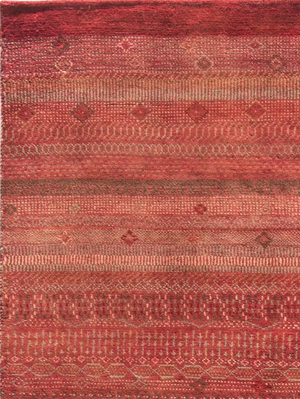 ist eine ungewöhnliche moderne Variation des traditionellen persichen Gabbehs. Er ist kürzer im Flor und feiner geknüpft. Es gibt zahllose Neukreationen in individuellen und einzigartigen Farben und Mustern.| Gesamthöhe: | ca. 7 mm |