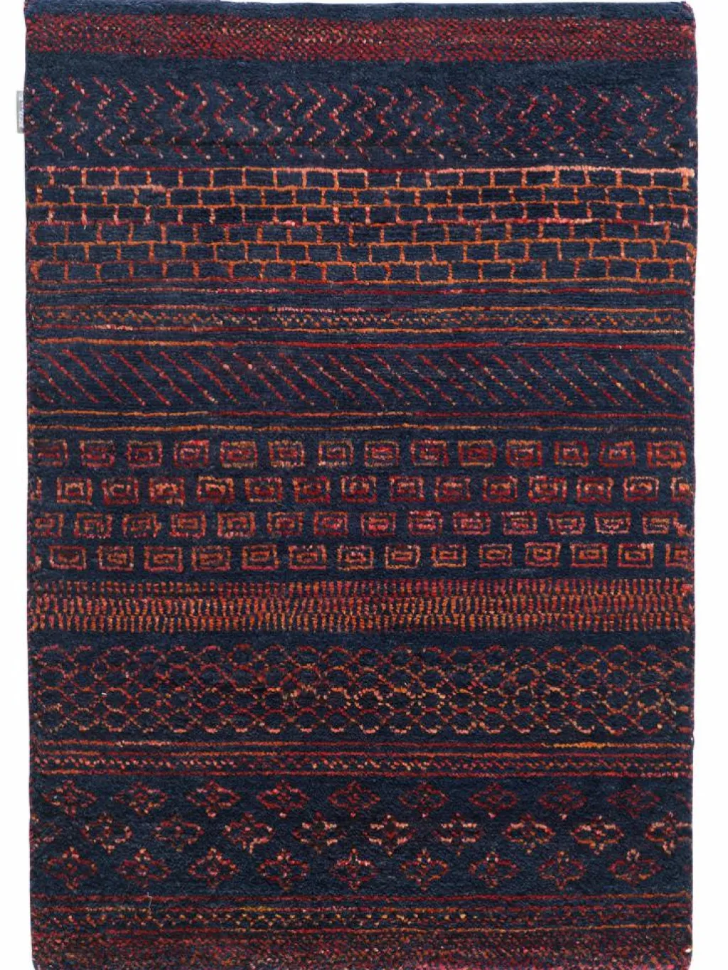 ist eine ungewöhnliche moderne Variation des traditionellen persichen Gabbehs. Er ist kürzer im Flor und feiner geknüpft. Es gibt zahllose Neukreationen in individuellen und einzigartigen Farben und Mustern.| Gesamthöhe: | ca. 8 mm |