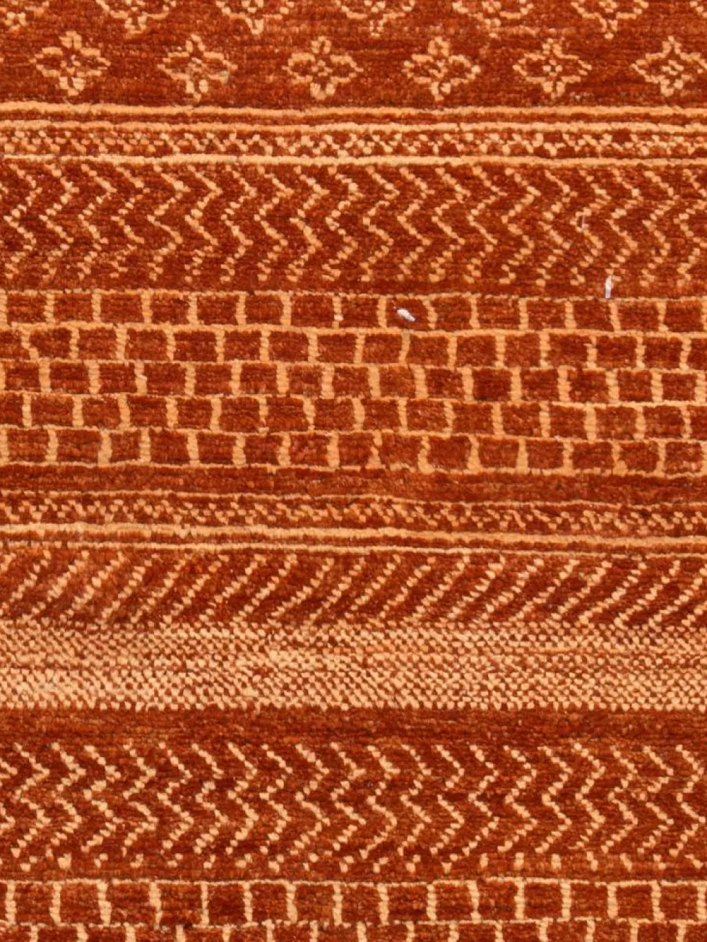 ist eine ungewöhnliche moderne Variation des traditionellen persichen Gabbehs. Er ist kürzer im Flor und feiner geknüpft. Es gibt zahllose Neukreationen in individuellen und einzigartigen Farben und Mustern.| Gesamthöhe: | ca. 6 mm |
