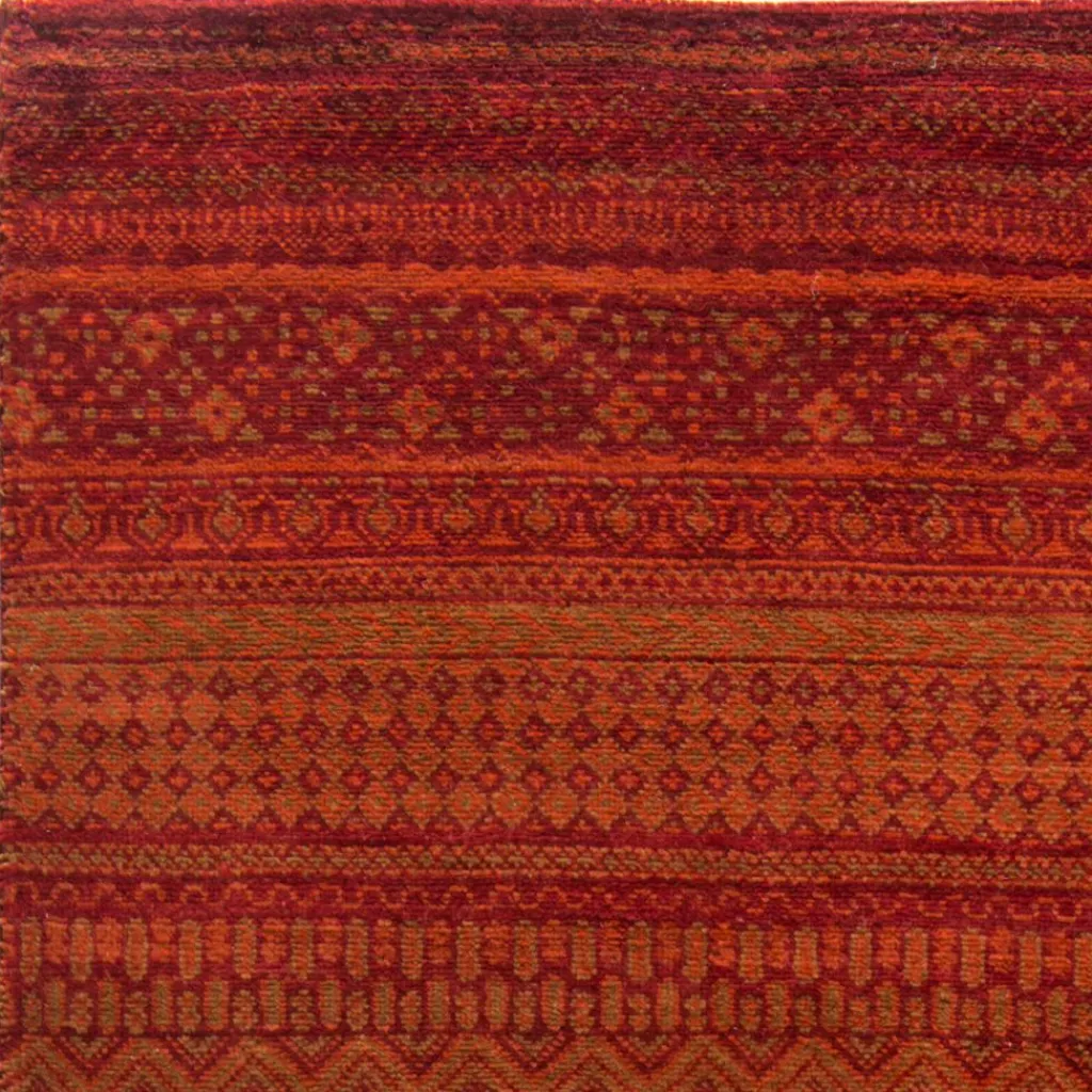 ist eine ungewöhnliche moderne Variation des traditionellen persichen Gabbehs. Er ist kürzer im Flor und feiner geknüpft. Es gibt zahllose Neukreationen in individuellen und einzigartigen Farben und Mustern.| Gesamthöhe: | ca. 10 mm |