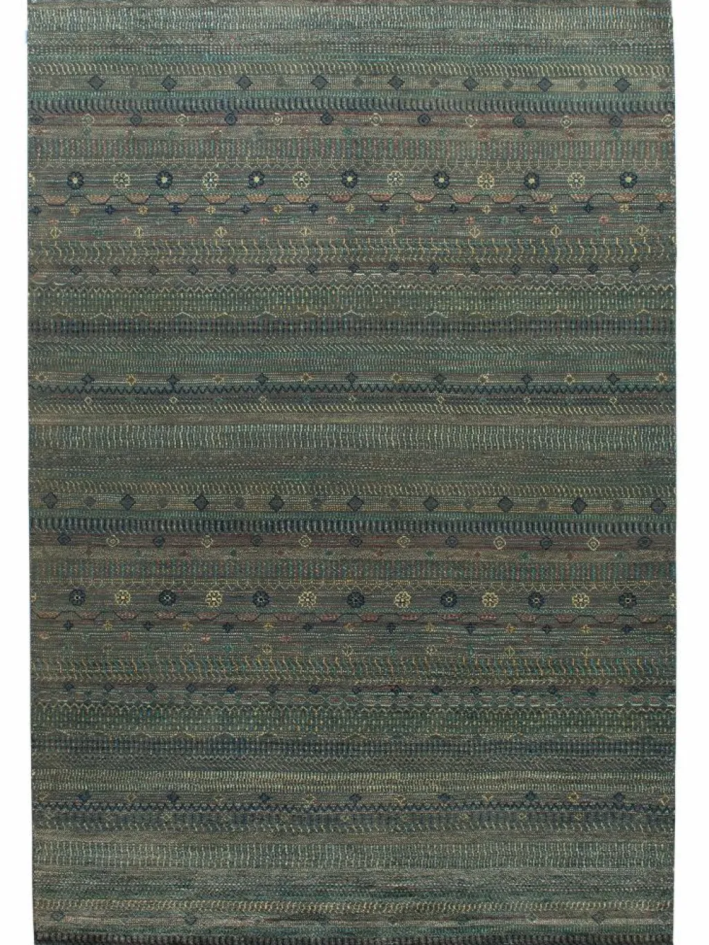 ist eine ungewöhnliche moderne Variation des traditionellen persichen Gabbehs. Er ist kürzer im Flor und feiner geknüpft. Es gibt zahllose Neukreationen in individuellen und einzigartigen Farben und Mustern.| Gesamthöhe: | ca. 7 mm |