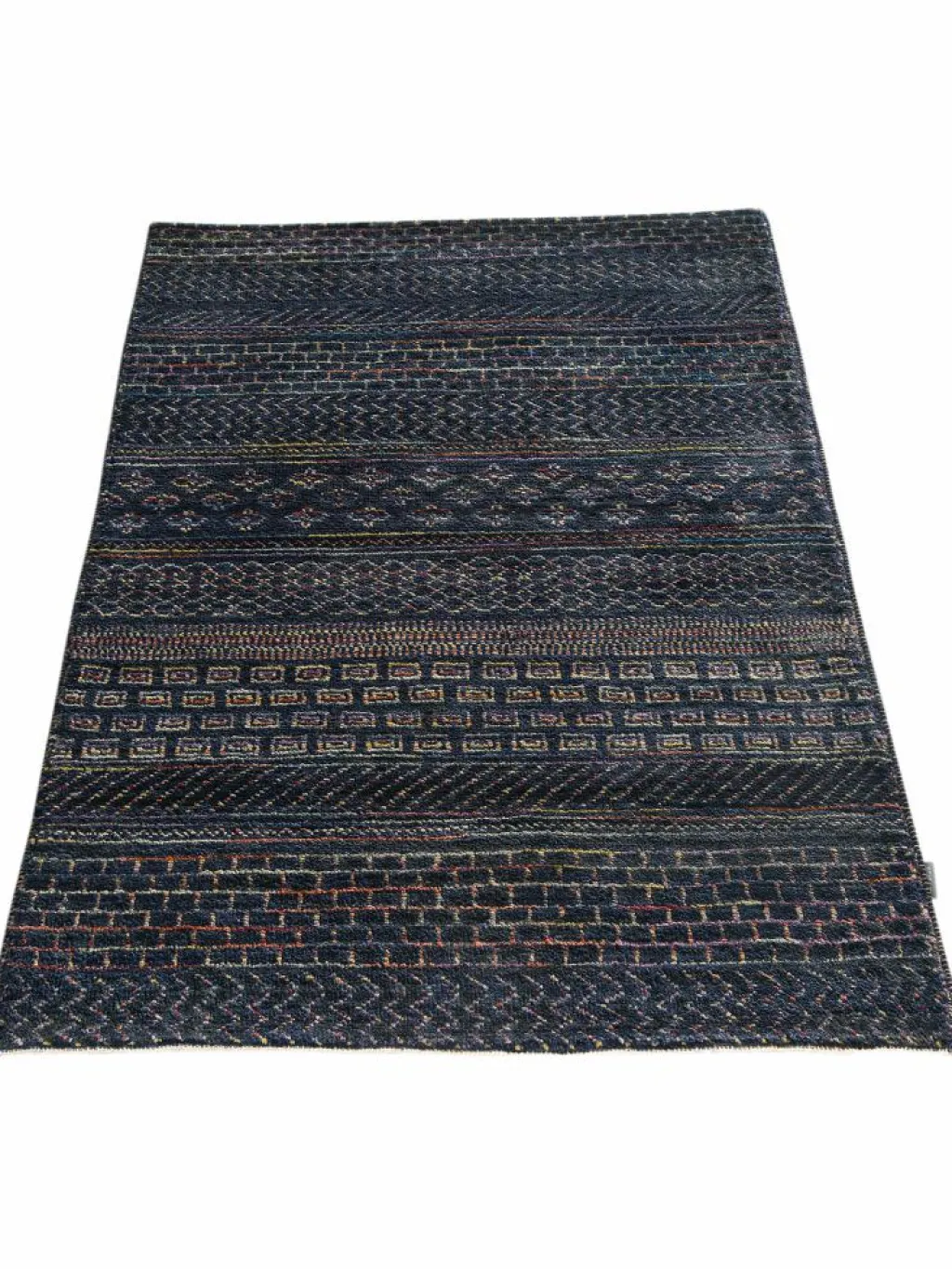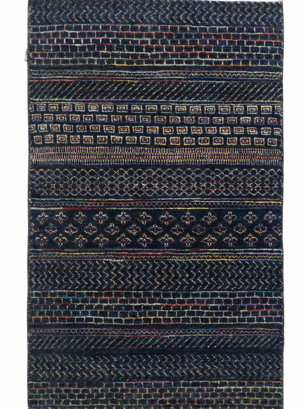 ist eine ungewöhnliche moderne Variation des traditionellen persichen Gabbehs. Er ist kürzer im Flor und feiner geknüpft. Es gibt zahllose Neukreationen in individuellen und einzigartigen Farben und Mustern.| Gesamthöhe: | ca. 10 mm |
