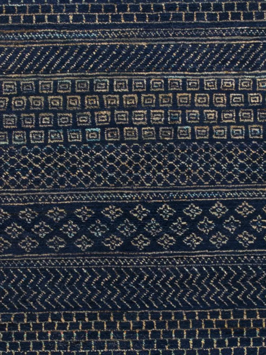 ist eine ungewöhnliche moderne Variation des traditionellen persichen Gabbehs. Er ist kürzer im Flor und feiner geknüpft. Es gibt zahllose Neukreationen in individuellen und einzigartigen Farben und Mustern.| Gesamthöhe: | ca. 7 mm |