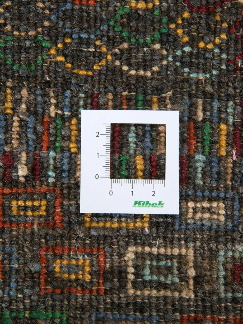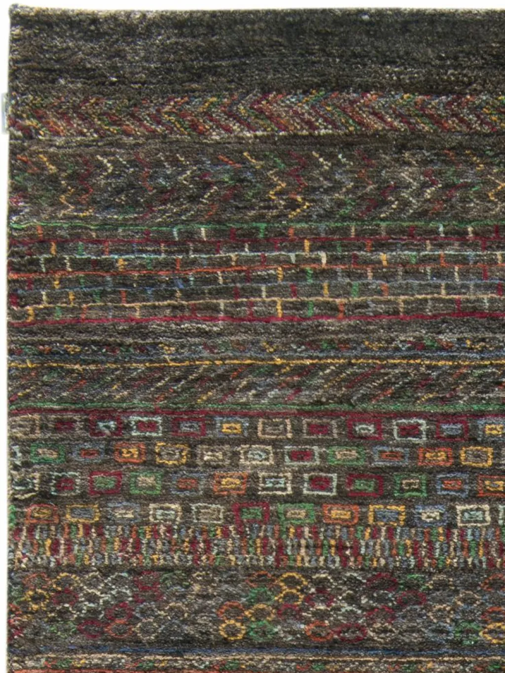 ist eine ungewöhnliche moderne Variation des traditionellen persichen Gabbehs. Er ist kürzer im Flor und feiner geknüpft. Es gibt zahllose Neukreationen in individuellen und einzigartigen Farben und Mustern.| Gesamthöhe: | ca. 7 mm |