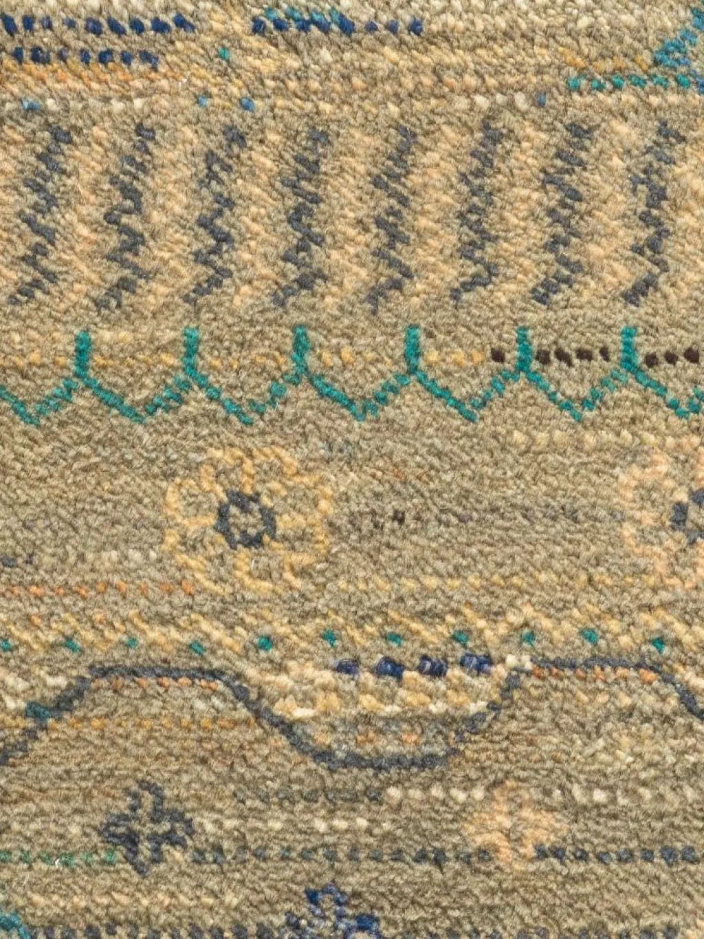 ist eine ungewöhnliche moderne Variation des traditionellen persichen Gabbehs. Er ist kürzer im Flor und feiner geknüpft. Es gibt zahllose Neukreationen in individuellen und einzigartigen Farben und Mustern.| Gesamthöhe: | ca. 7 mm |