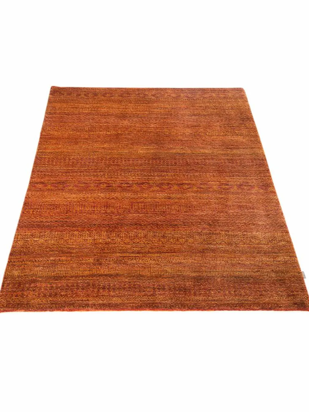 ist eine ungewöhnliche moderne Variation des traditionellen persichen Gabbehs. Er ist kürzer im Flor und feiner geknüpft. Es gibt zahllose Neukreationen in individuellen und einzigartigen Farben und Mustern.| Gesamthöhe: | ca. 10 mm |