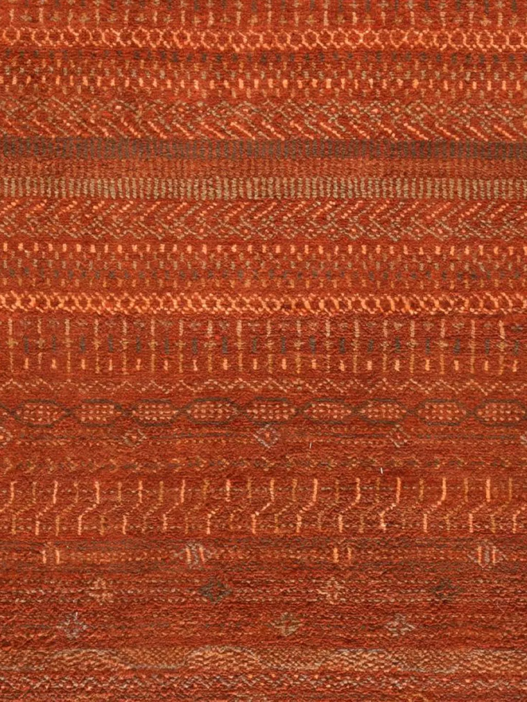 ist eine ungewöhnliche moderne Variation des traditionellen persichen Gabbehs. Er ist kürzer im Flor und feiner geknüpft. Es gibt zahllose Neukreationen in individuellen und einzigartigen Farben und Mustern.| Gesamthöhe: | ca. 7 mm |