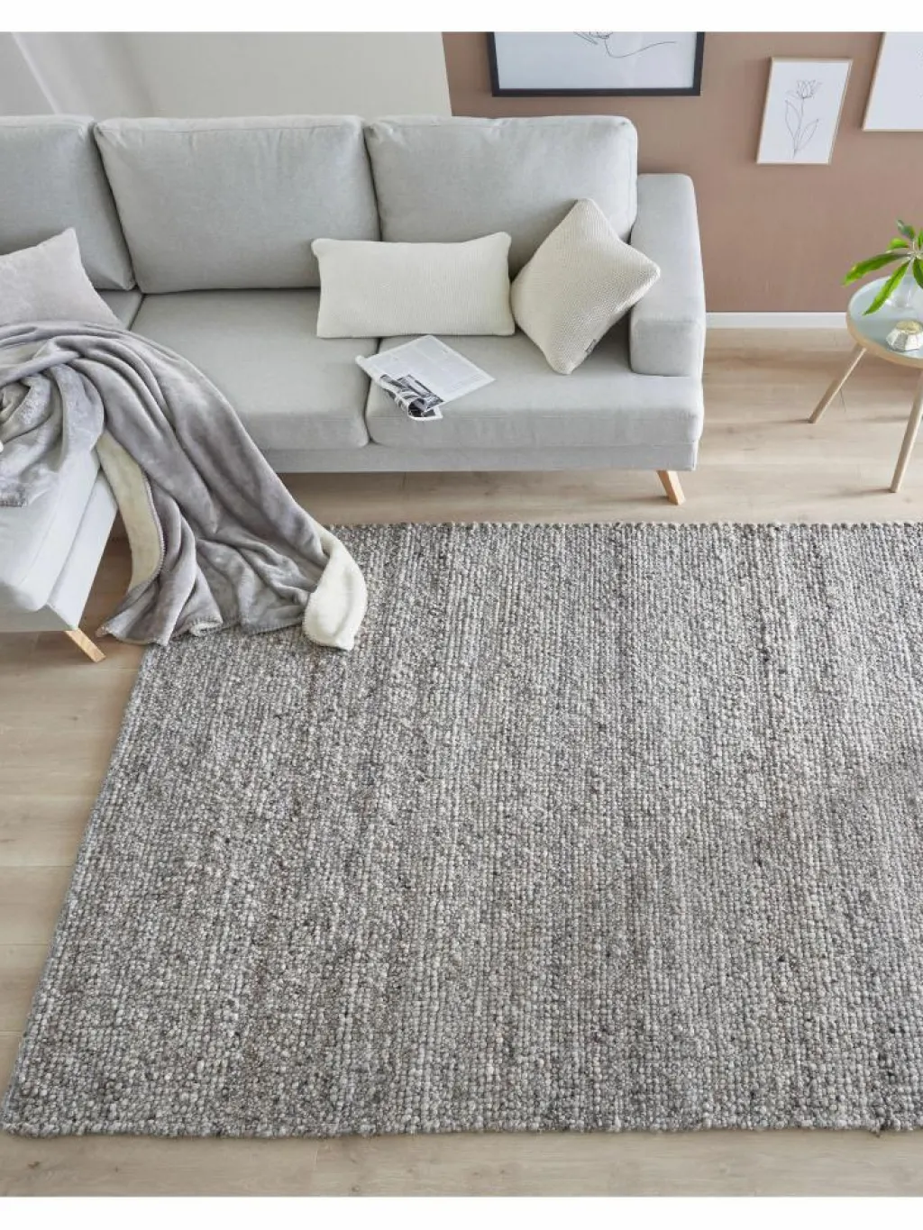 , denn es wärmt uns und unser Zuhause. Wie ein Beet voller Kieselsteine strahlt der stark strukturierte Flor aus gewalkterSchurwolle