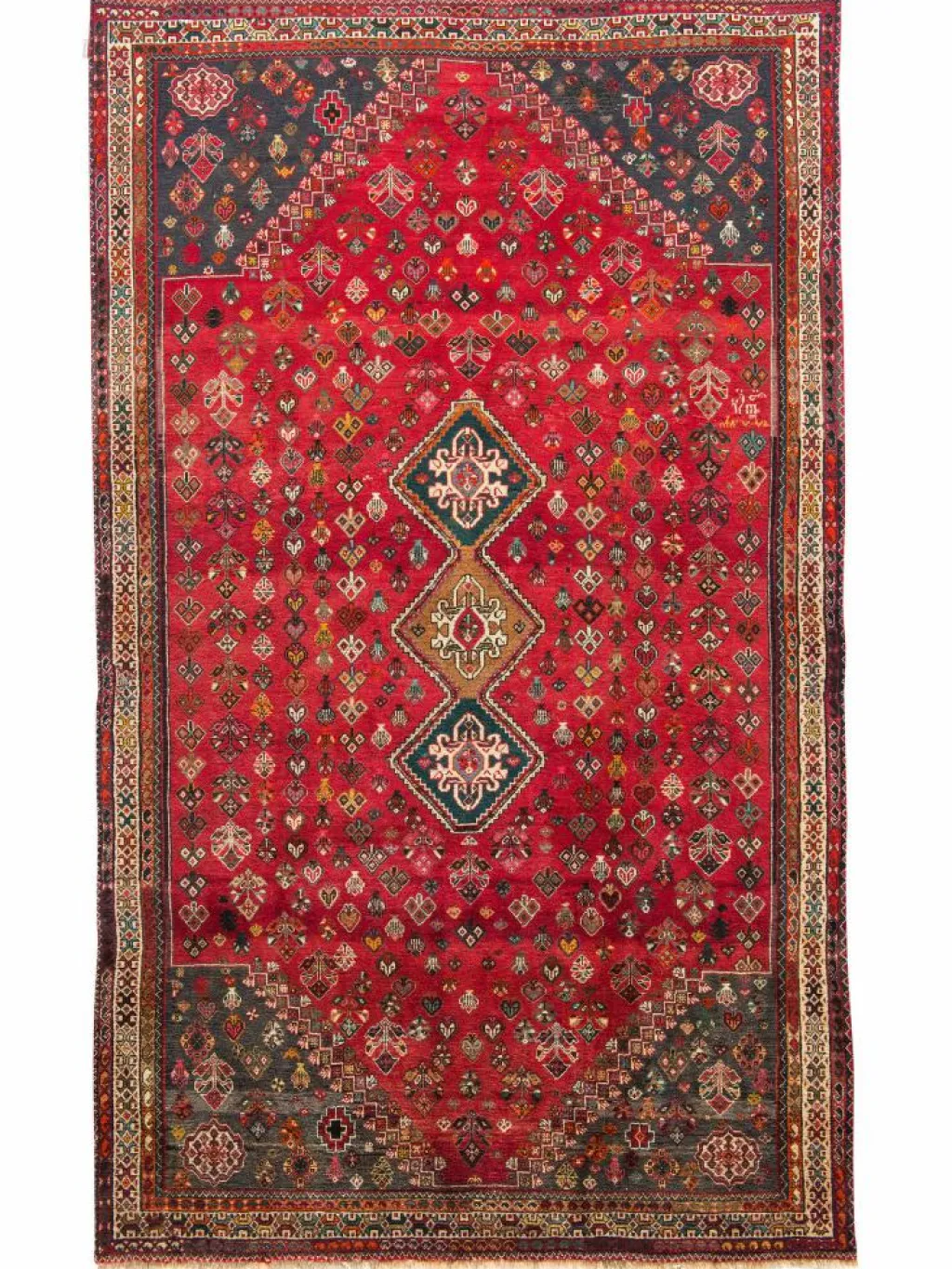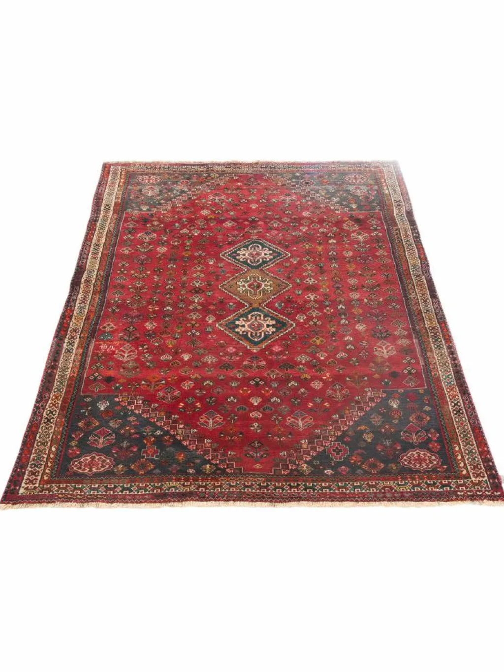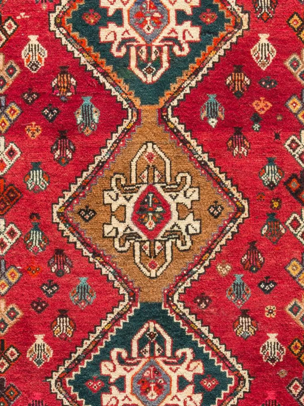 -Teppiche sind die Könige unter den Nomadenteppichen. Knüpfvorlagen gibt es bei den Ghashgai nicht. Die Knüpferinnen haben ein sehr gutes Gedächtnis. Sie brauchen ein interessantes Motiv nur einmal zu sehen oder erzählt zu bekommen. Alle Teppiche werden aus dem Gedächtnis geknüpft und sind daher nie gleich. Die Ornamente werden immer anders angeordnet oder die Farben unterscheiden sich. DasGrundgewebe