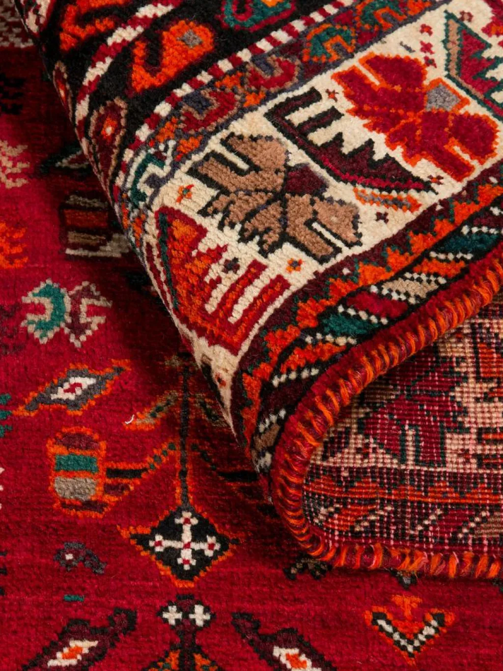 -Teppiche sind die Könige unter den Nomadenteppichen. Knüpfvorlagen gibt es bei den Ghashgai nicht. Die Knüpferinnen haben ein sehr gutes Gedächtnis. Sie brauchen ein interessantes Motiv nur einmal zu sehen oder erzählt zu bekommen. Alle Teppiche werden aus dem Gedächtnis geknüpft und sind daher nie gleich. Die Ornamente werden immer anders angeordnet oder die Farben unterscheiden sich. DasGrundgewebe