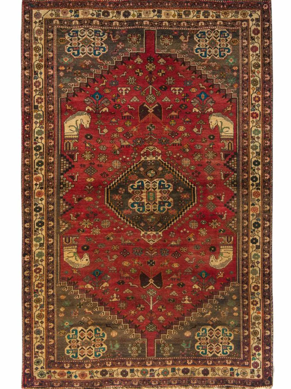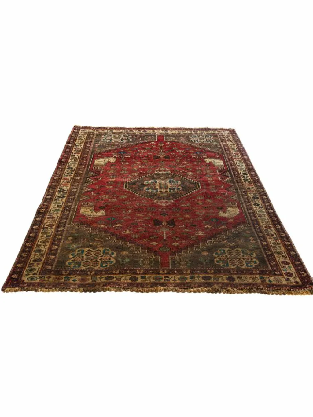 -Teppiche sind die Könige unter den Nomadenteppichen. Knüpfvorlagen gibt es bei den Ghashgai nicht. Die Knüpferinnen haben ein sehr gutes Gedächtnis. Sie brauchen ein interessantes Motiv nur einmal zu sehen oder erzählt zu bekommen. Alle Teppiche werden aus dem Gedächtnis geknüpft und sind daher nie gleich. Die Ornamente werden immer anders angeordnet oder die Farben unterscheiden sich. DasGrundgewebe