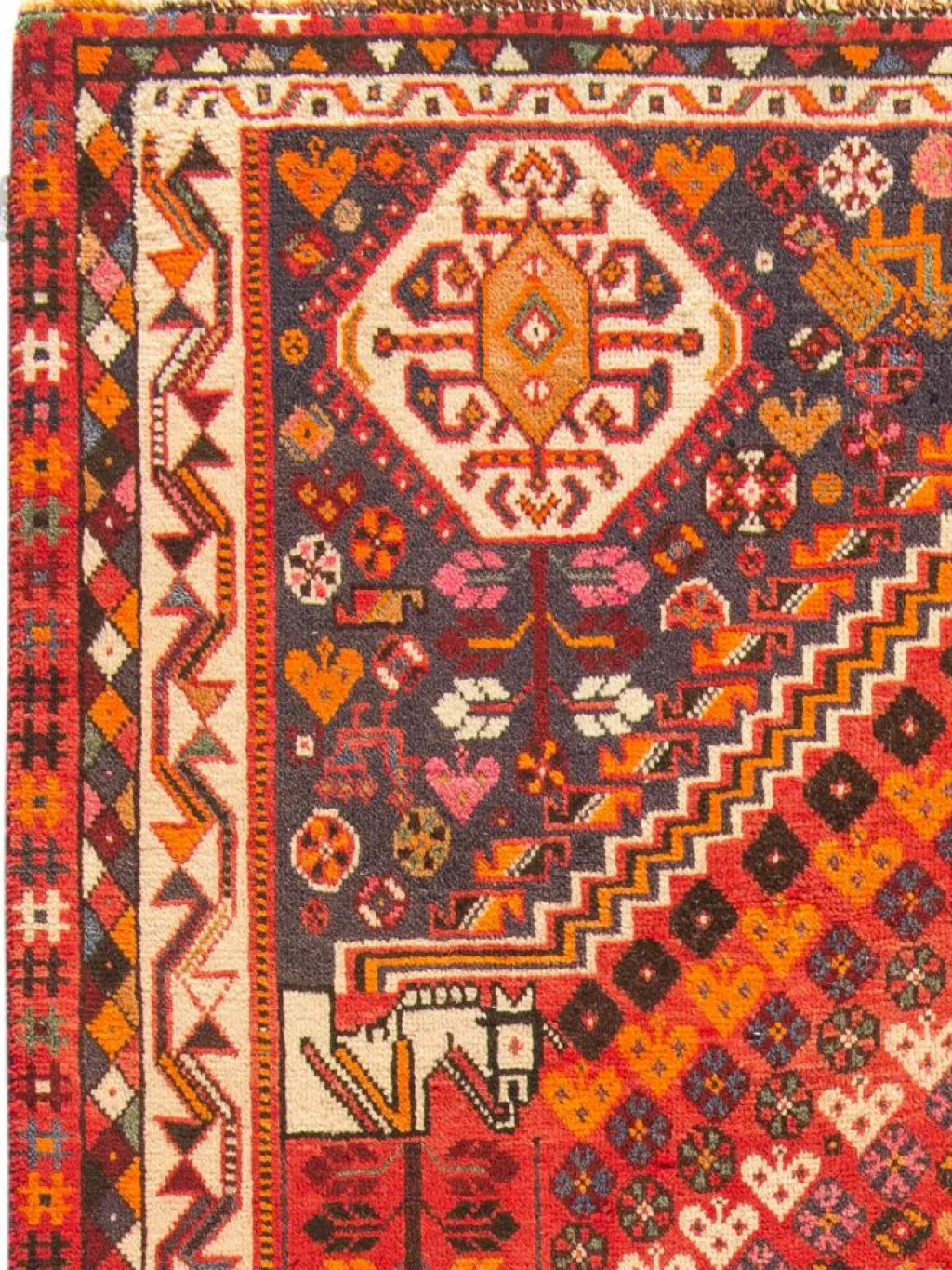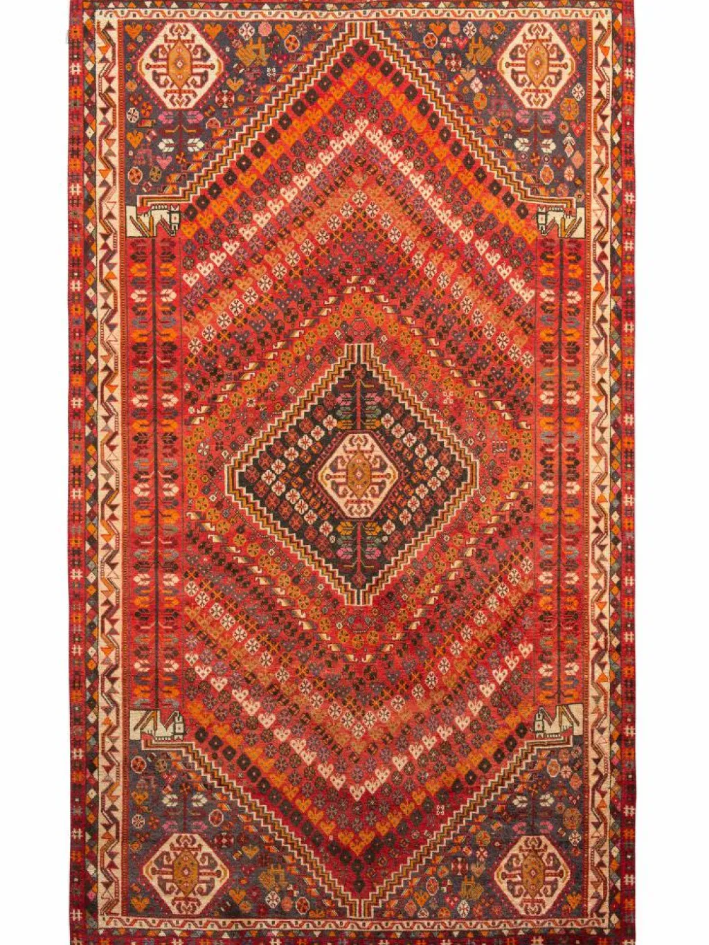 -Teppiche sind die Könige unter den Nomadenteppichen. Knüpfvorlagen gibt es bei den Ghashgai nicht. Die Knüpferinnen haben ein sehr gutes Gedächtnis. Sie brauchen ein interessantes Motiv nur einmal zu sehen oder erzählt zu bekommen. Alle Teppiche werden aus dem Gedächtnis geknüpft und sind daher nie gleich. Die Ornamente werden immer anders angeordnet oder die Farben unterscheiden sich. DasGrundgewebe