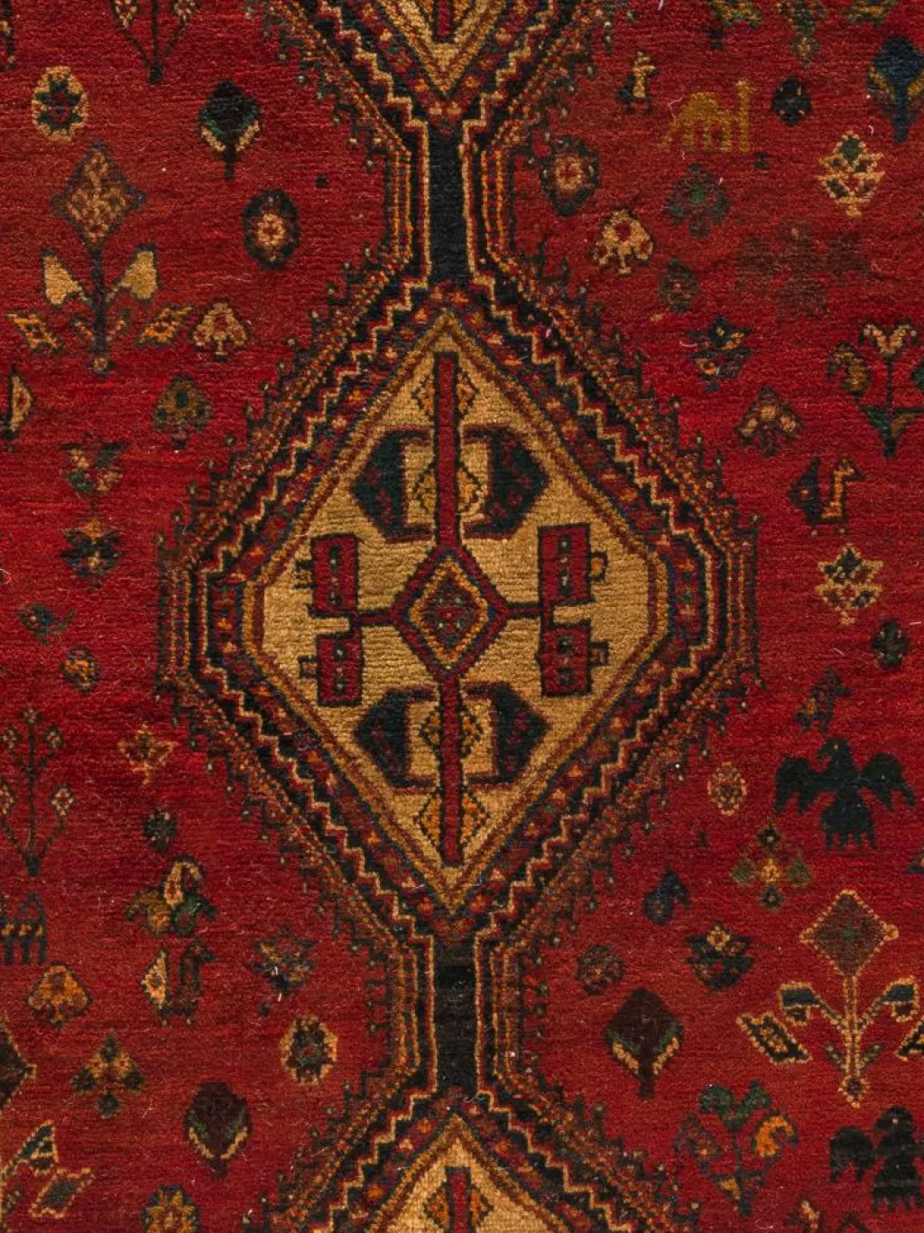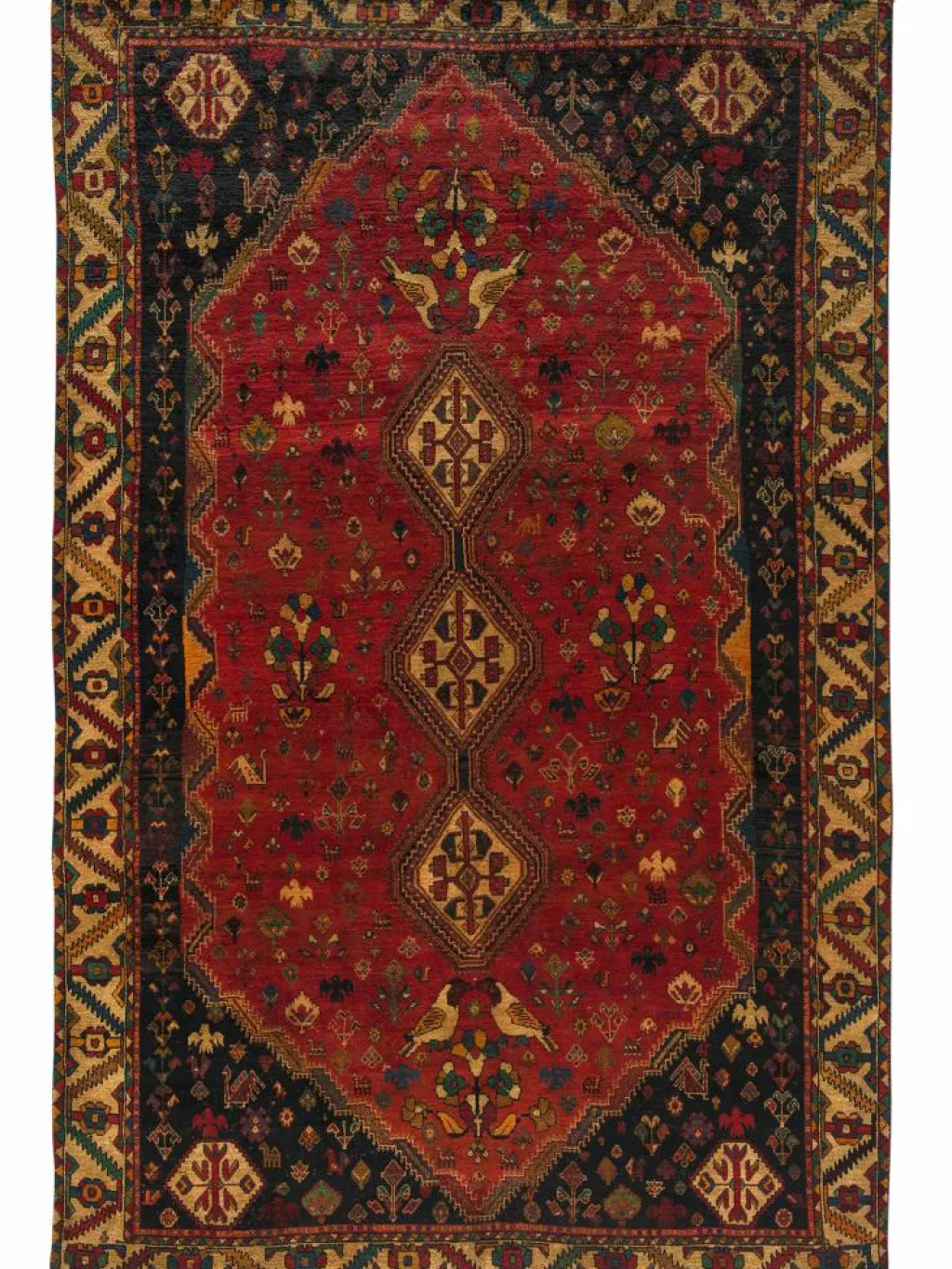 -Teppiche sind die Könige unter den Nomadenteppichen. Knüpfvorlagen gibt es bei den Ghashgai nicht. Die Knüpferinnen haben ein sehr gutes Gedächtnis. Sie brauchen ein interessantes Motiv nur einmal zu sehen oder erzählt zu bekommen. Alle Teppiche werden aus dem Gedächtnis geknüpft und sind daher nie gleich. Die Ornamente werden immer anders angeordnet oder die Farben unterscheiden sich. DasGrundgewebe