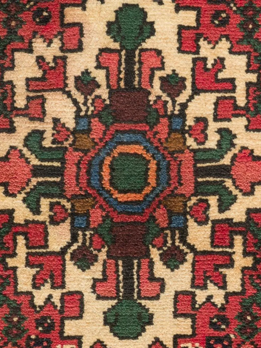 geknüpft oder von einem kleinen rautenförmigen Mittelmedaillon unterbrachen, das durch entsprechende Eckzwickel bildlich ausgeglichen wird.Die Gegend umHamadan