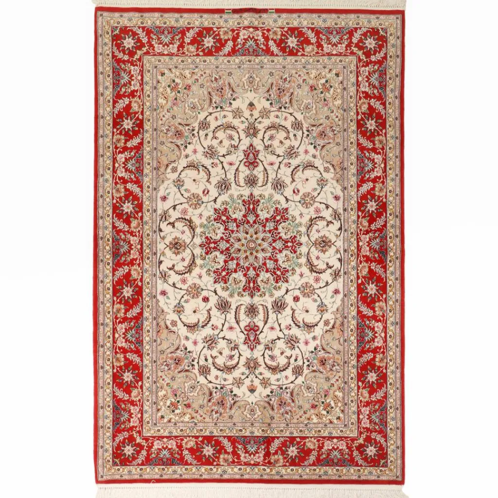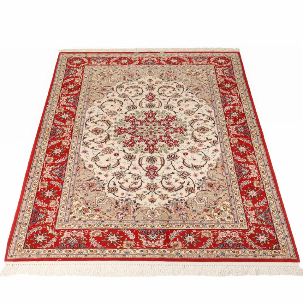 ist der edle Klassiker unter den persischen Orientteppichen. Er ist besonders fein. Nicht selten dauert es ein Jahr und länger bis ein Teppich fertig gestellt ist. Die Muster desIsfahan