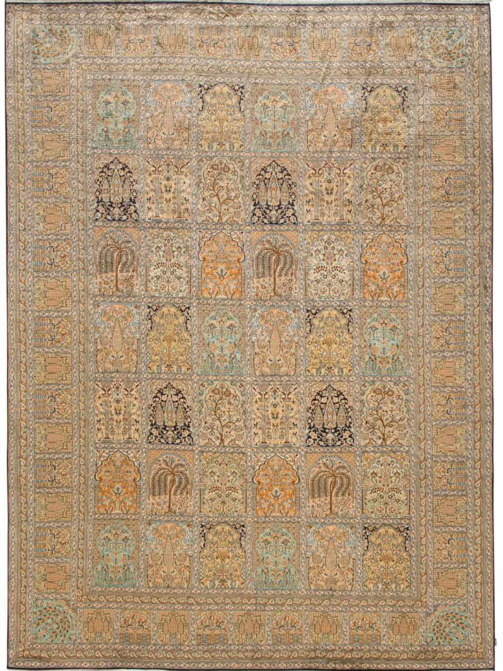 -Teppiche sind eher zurückhaltend, die Muster nach wie vor sehr stark persisch beeinflusst. Florale Motive und das persischeFeldermuster