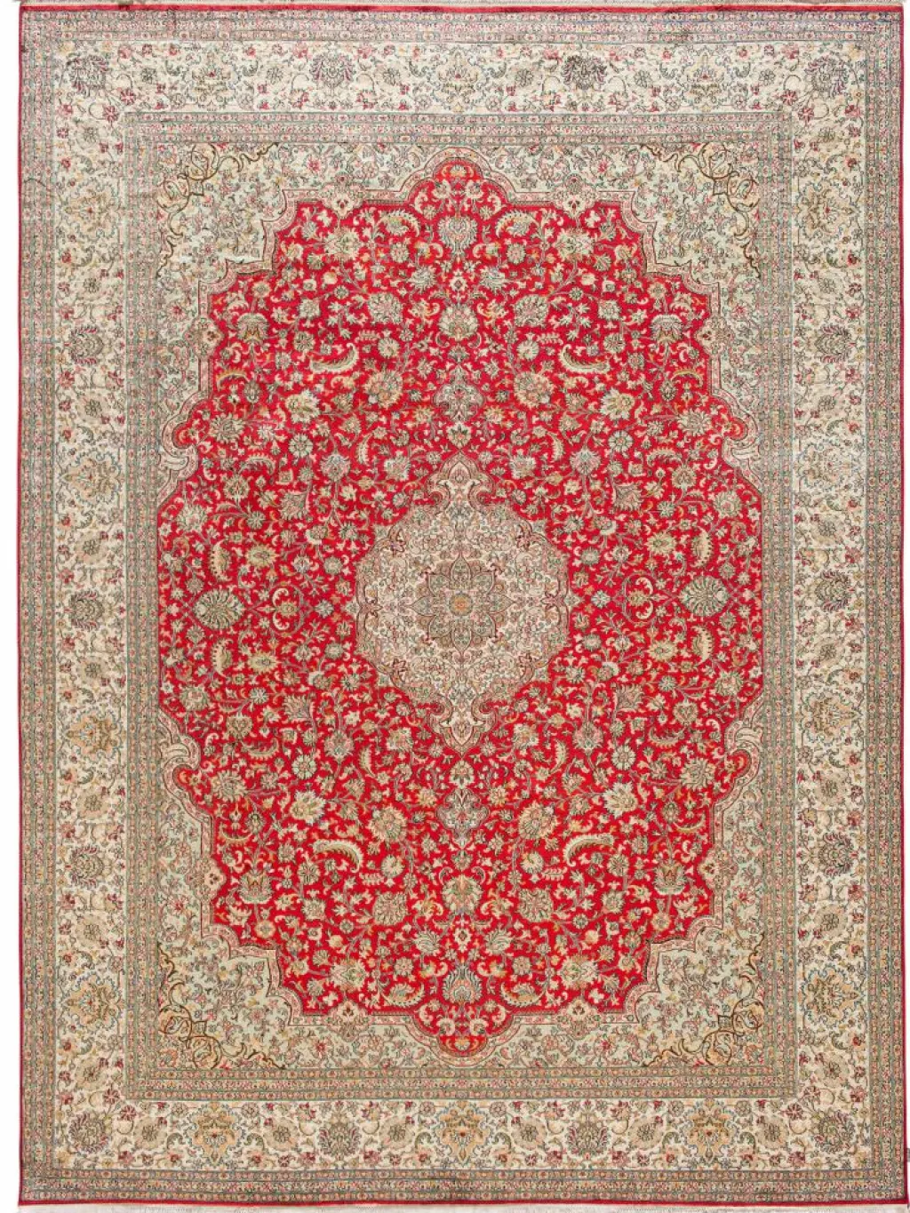 -Teppiche sind eher zurückhaltend, die Muster nach wie vor sehr stark persisch beeinflusst. Florale Motive und das persischeFeldermuster