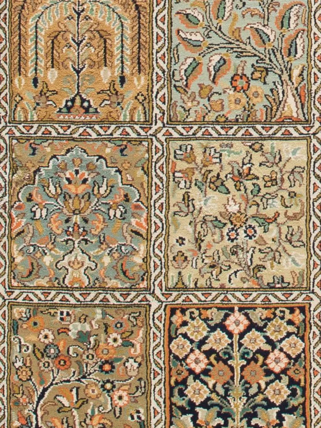 -Teppiche sind eher zurückhaltend, die Muster nach wie vor sehr stark persisch beeinflusst. Florale Motive und das persischeFeldermuster