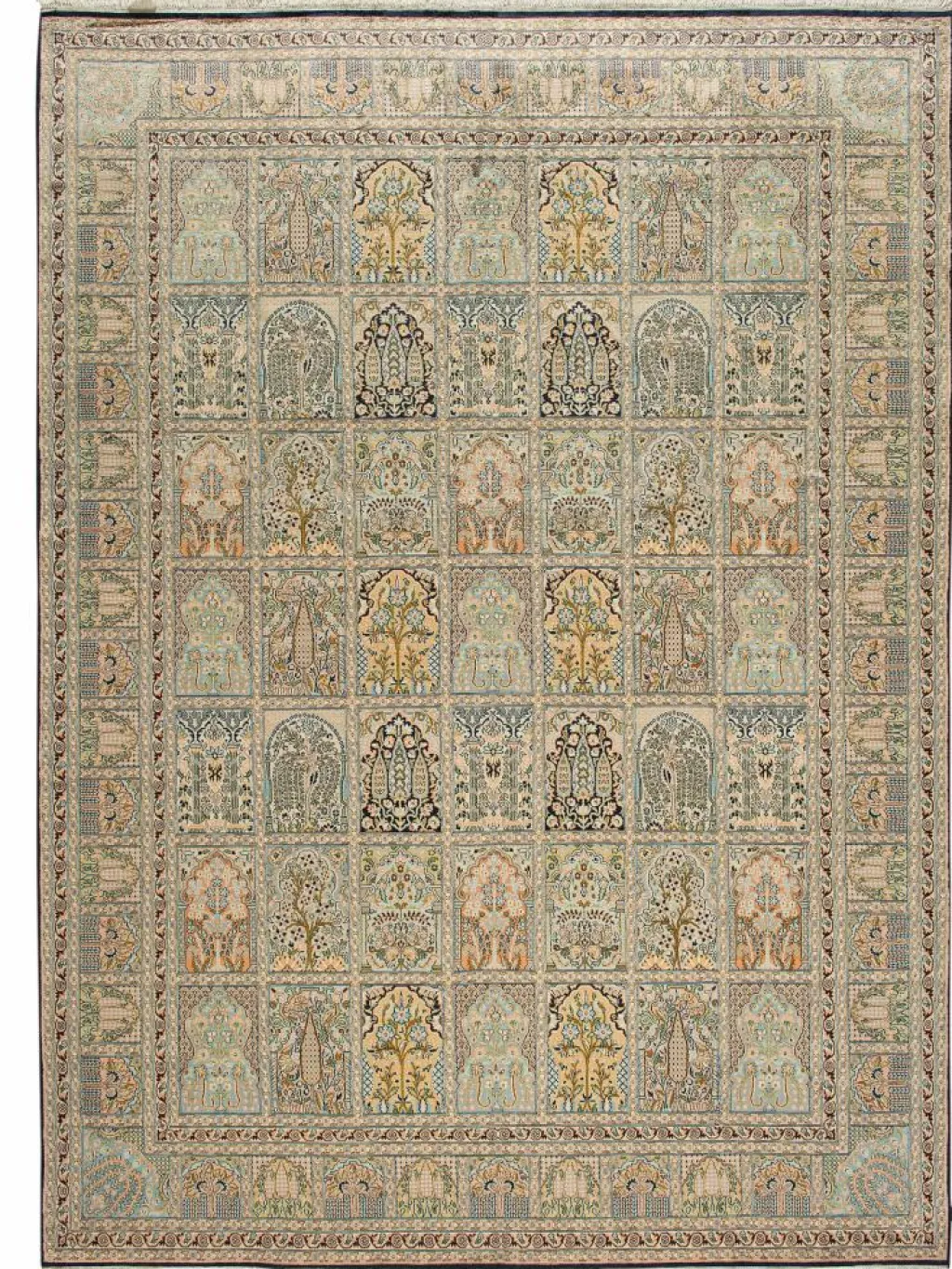 -Teppiche sind eher zurückhaltend, die Muster nach wie vor sehr stark persisch beeinflusst. Florale Motive und das persischeFeldermuster