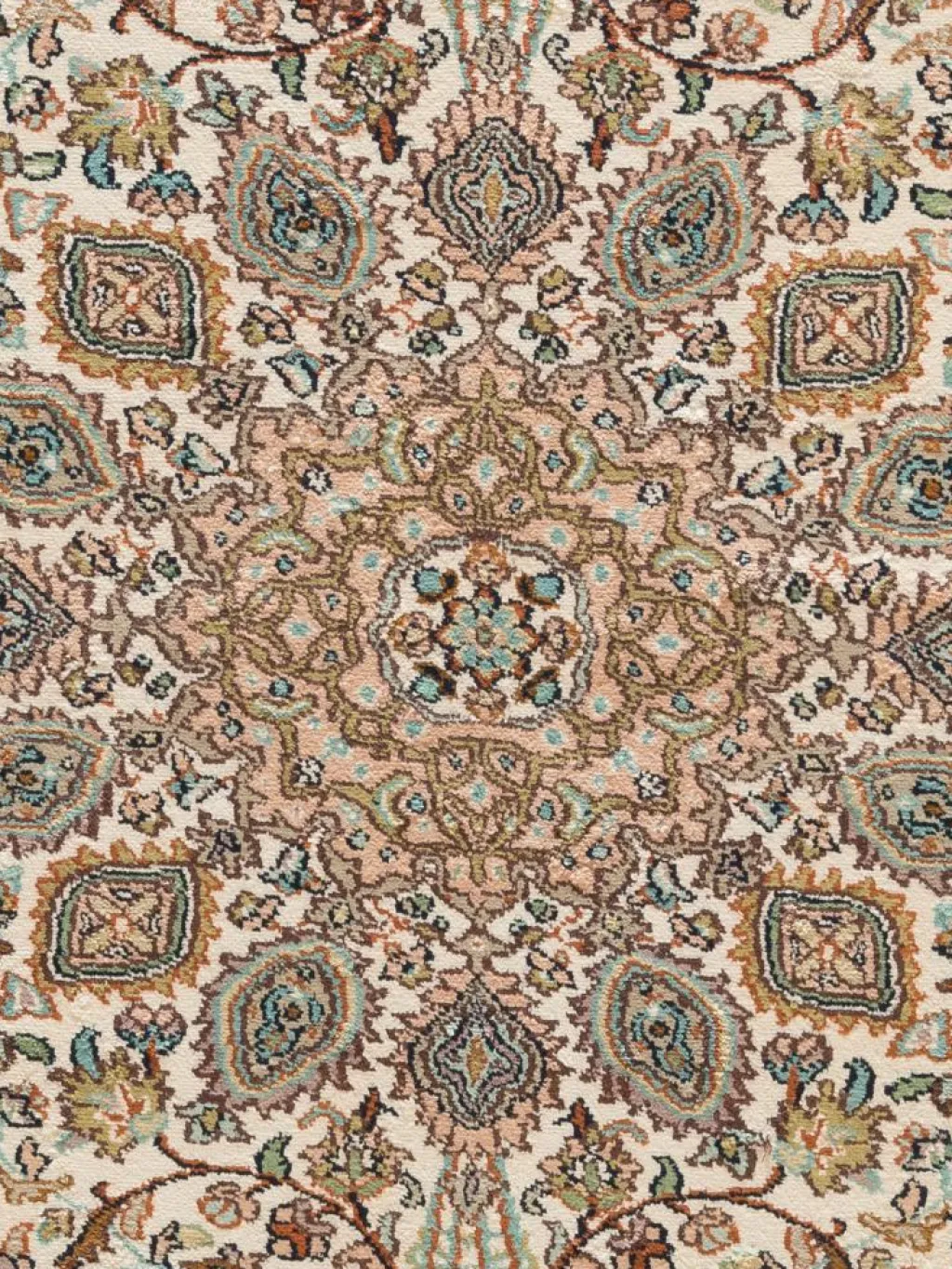 -Teppiche sind eher zurückhaltend, die Muster nach wie vor sehr stark persisch beeinflusst. Florale Motive und das persischeFeldermuster