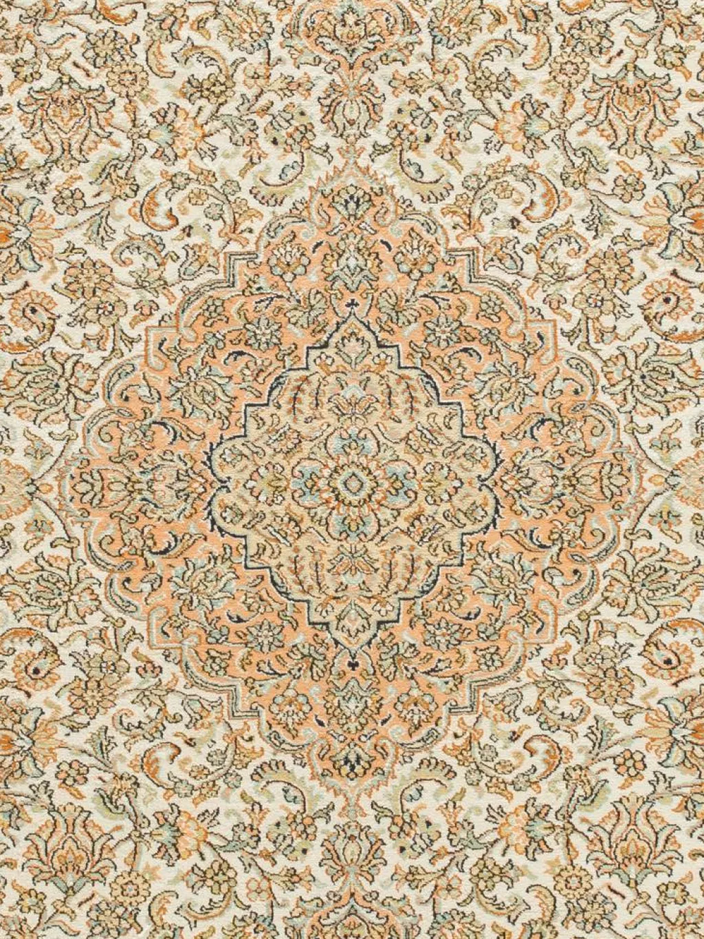 -Teppiche sind eher zurückhaltend, die Muster nach wie vor sehr stark persisch beeinflusst. Florale Motive und das persischeFeldermuster