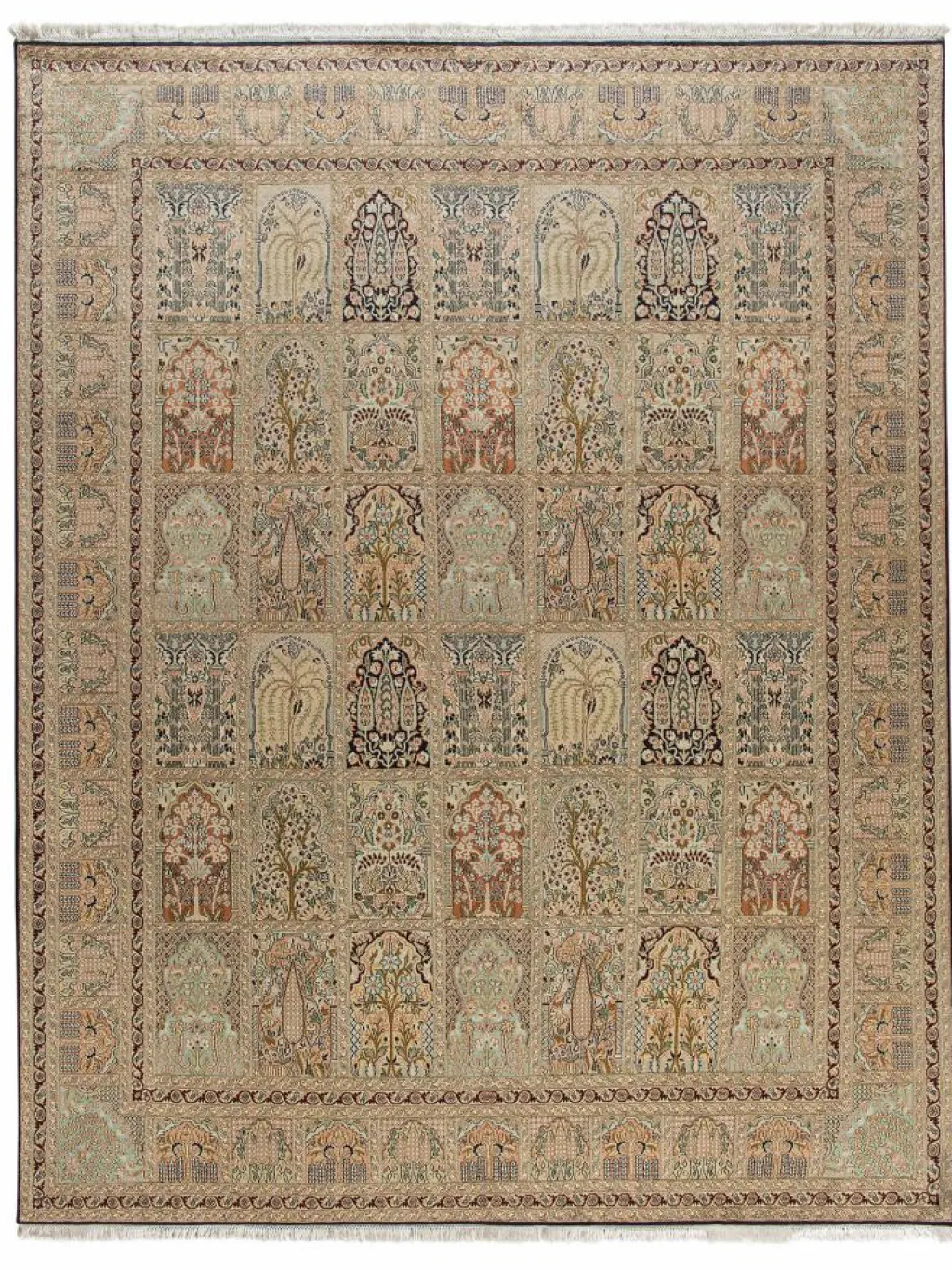 -Teppiche sind eher zurückhaltend, die Muster nach wie vor sehr stark persisch beeinflusst. Florale Motive und das persischeFeldermuster