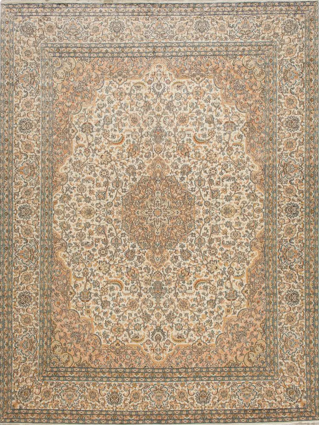 -Teppiche sind eher zurückhaltend, die Muster nach wie vor sehr stark persisch beeinflusst. Florale Motive und das persischeFeldermuster