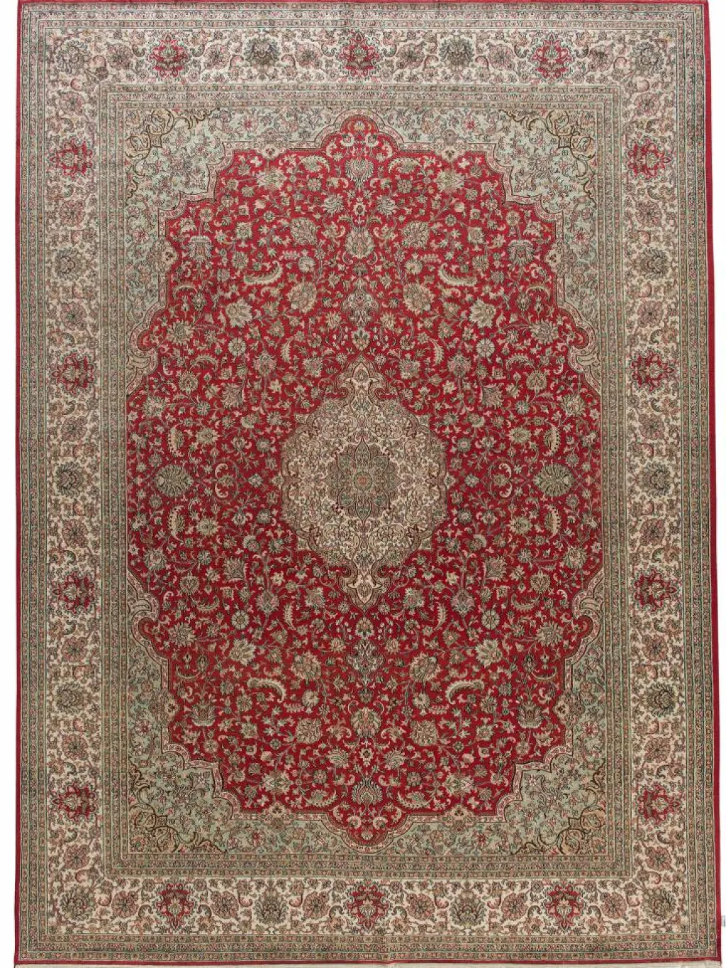 -Teppiche sind eher zurückhaltend, die Muster nach wie vor sehr stark persisch beeinflusst. Florale Motive und das persischeFeldermuster