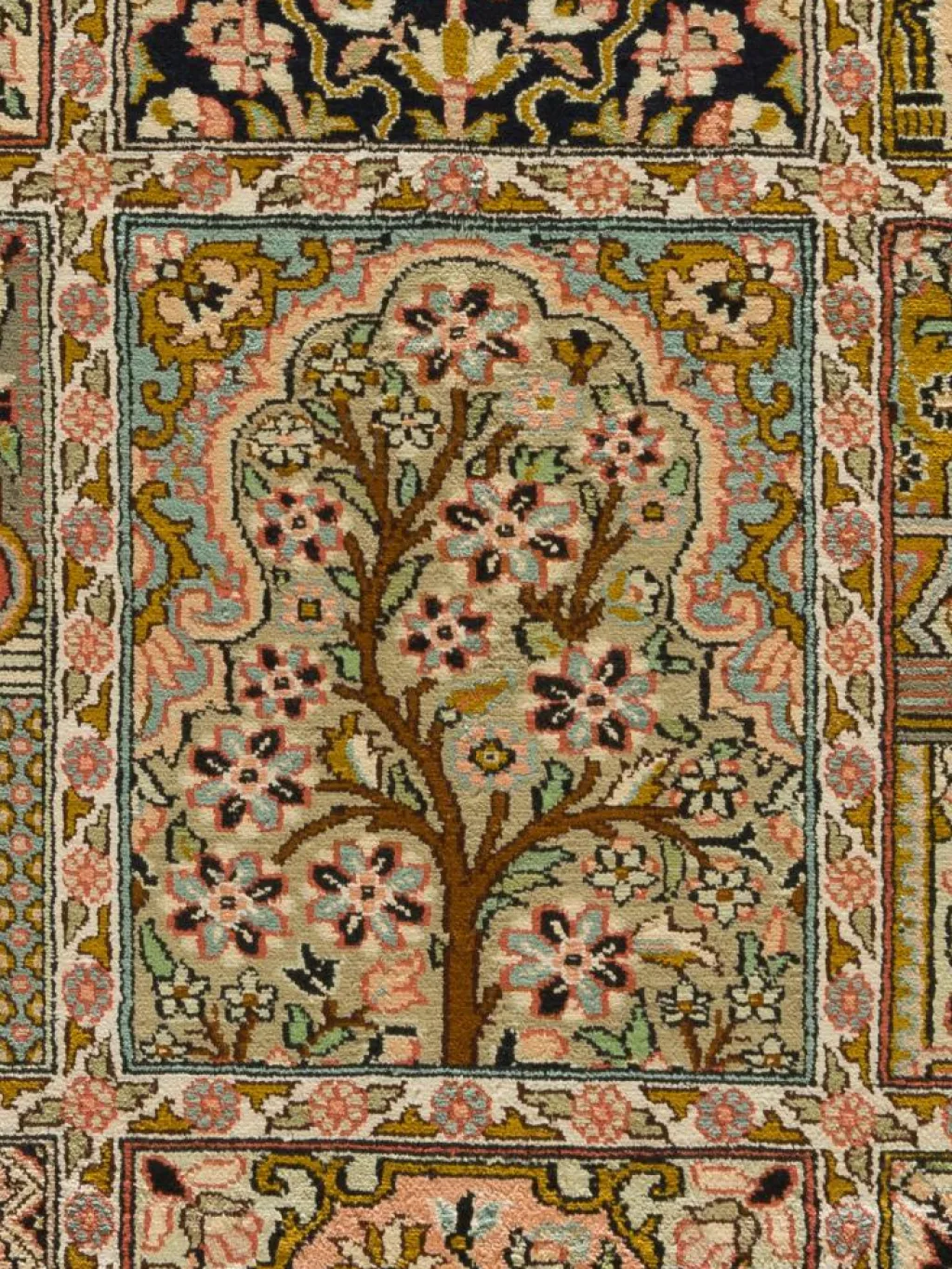 -Teppiche sind eher zurückhaltend, die Muster nach wie vor sehr stark persisch beeinflusst. Florale Motive und das persischeFeldermuster