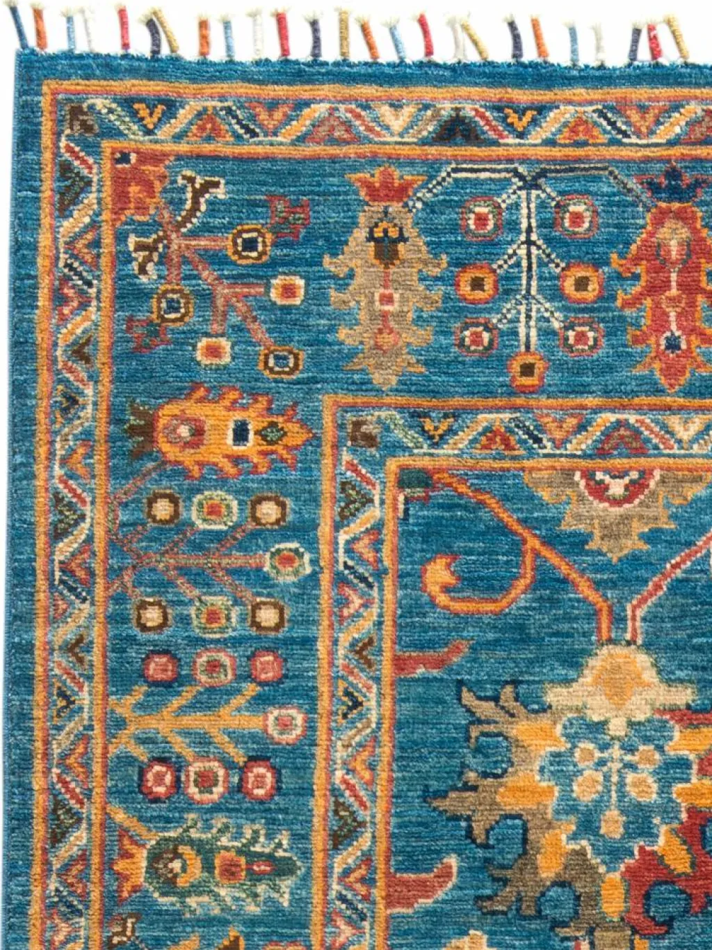 , einem klassischen Blütenmuster. Das Wort „Phool“ kommt aus der Pakistanischen Sprache Urdu und bedeutet „Blume“. Durch den flachen und festen Flor ist der Teppich unempfindlich gegenüber den Belastungen des Alltags. – Der Teppich wurde ausGhazni