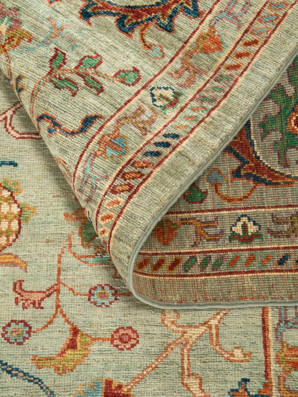 , einem klassischen Blütenmuster. Das Wort „Phool“ kommt aus der Pakistanischen Sprache Urdu und bedeutet „Blume“. Durch den flachen und festen Flor ist der Teppich unempfindlich gegenüber den Belastungen des Alltags. – Der Teppich wurde ausGhazni