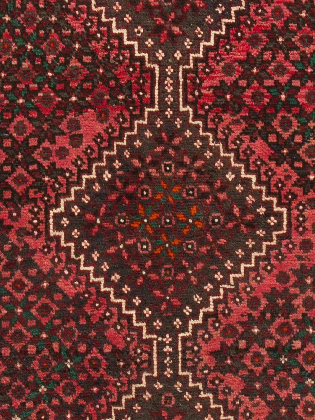 ist ein in warmen Tönen und traditionellen Mustern gehaltener Gebrauchsteppich. Typisch ist ein alsStangenmedaillon