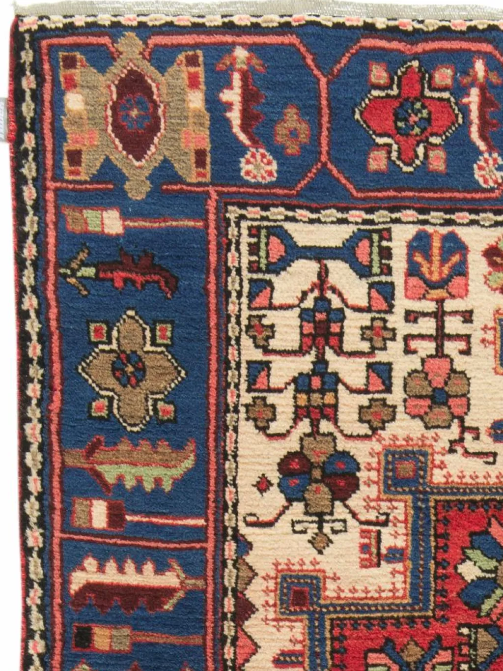 gehört zu den ältesten existierenden Städten Persiens. Der Flor ist relativ hoch und weich. Blüten, Blätter, Zweige und Vasen gruppieren sich in stark stilisierter Form um ein Mittelmedaillon.Die Gegend umHamadan