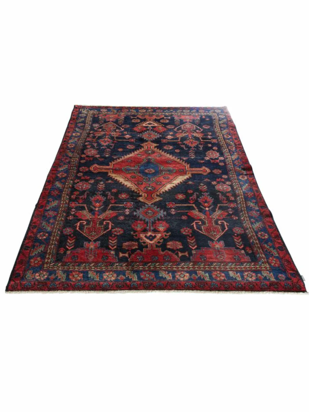 gehört zu den ältesten existierenden Städten Persiens. Der Flor ist relativ hoch und weich. Blüten, Blätter, Zweige und Vasen gruppieren sich in stark stilisierter Form um ein Mittelmedaillon.Die Gegend umHamadan