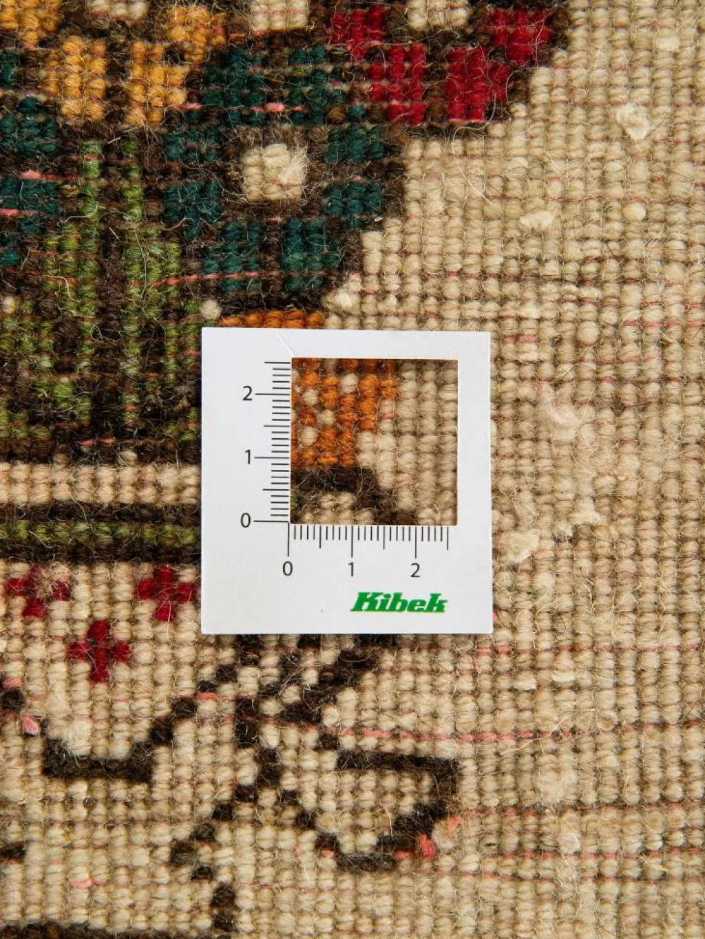 . Die Schur ist relativ hoch, der Griff fest. Die Muster sind meist schlicht oder eine Kombination mit traditionellen Mustern. Mustervorlagen gibt es nicht. Geknüpft werden alle Muster aus dem Kopf.| Gesamthöhe: | ca. 18 mm |