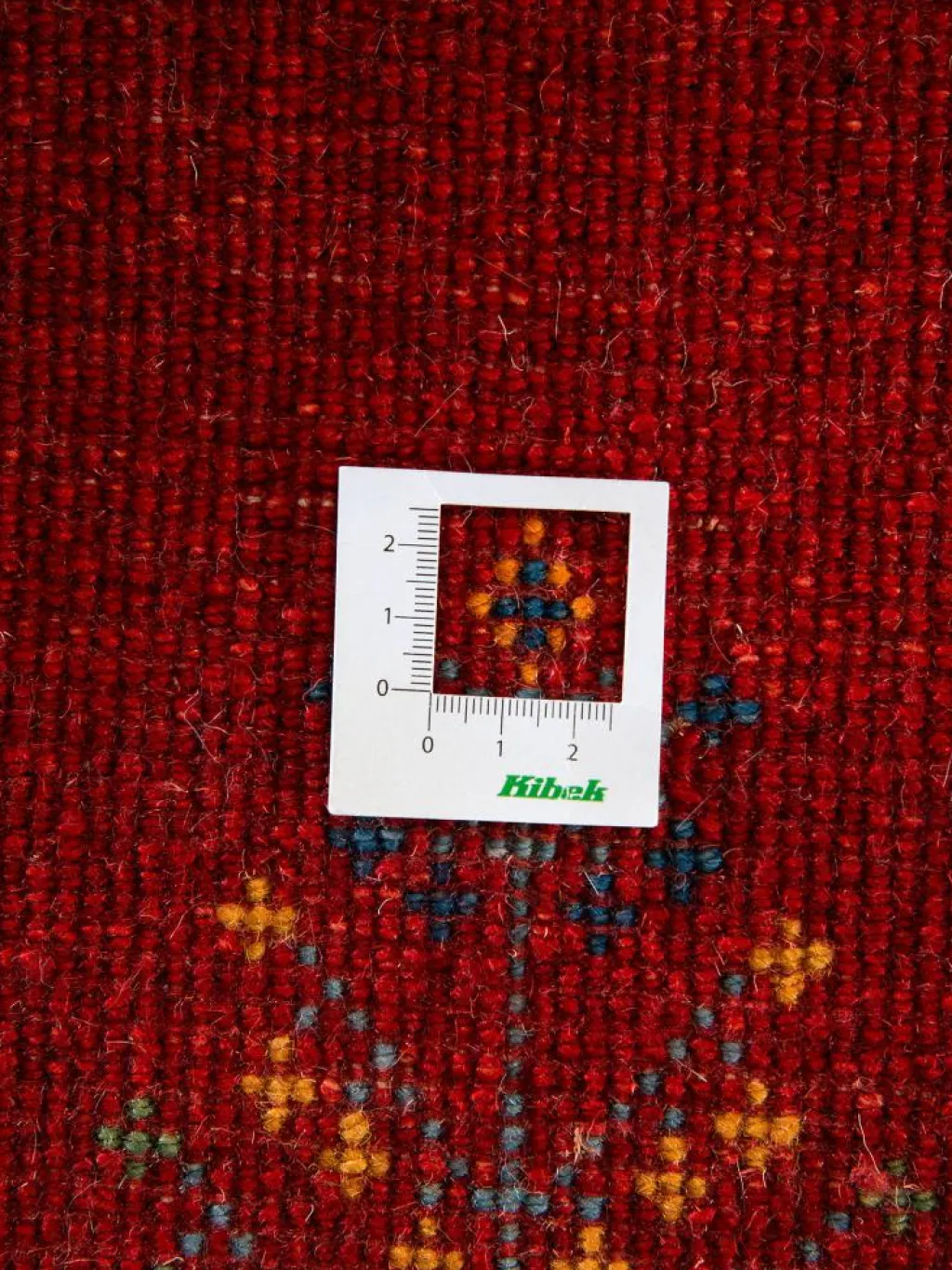 . Die Schur ist relativ hoch, der Griff fest. Die Muster sind meist schlicht oder eine Kombination mit traditionellen Mustern. Mustervorlagen gibt es nicht. Geknüpft werden alle Muster aus dem Kopf.| Gesamthöhe: | ca. 18 mm |